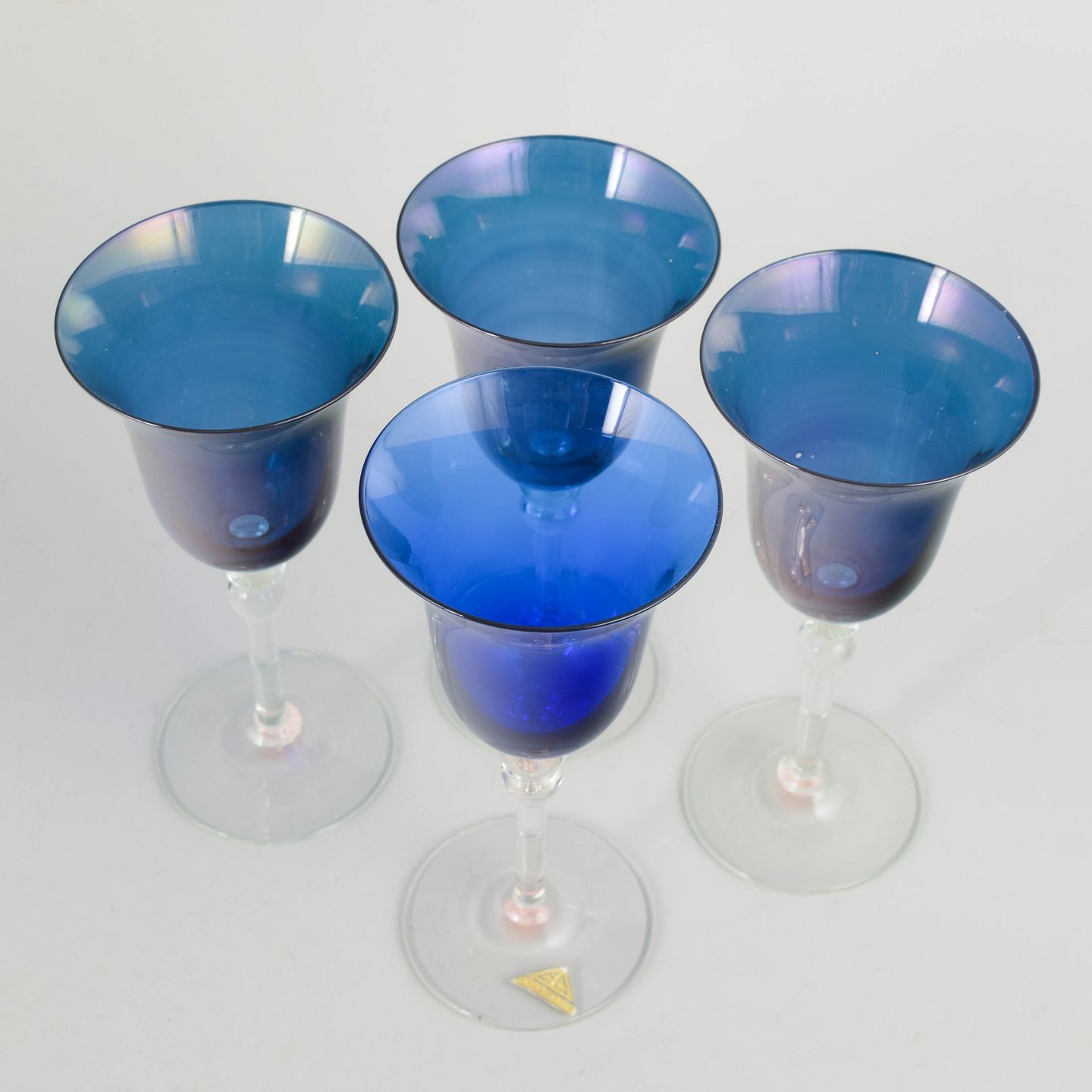 Gullaskruf Glasbruk, set of 4 champagne glasses.Set of four handmade art glass champagne glasses with a slender bowl and light, well-balanced stem. Designed in a classic Scandinavian idiom typical of Swedish glassmaking in the 1960s and 70s, with an emphasis on function, proportion, and clarity.