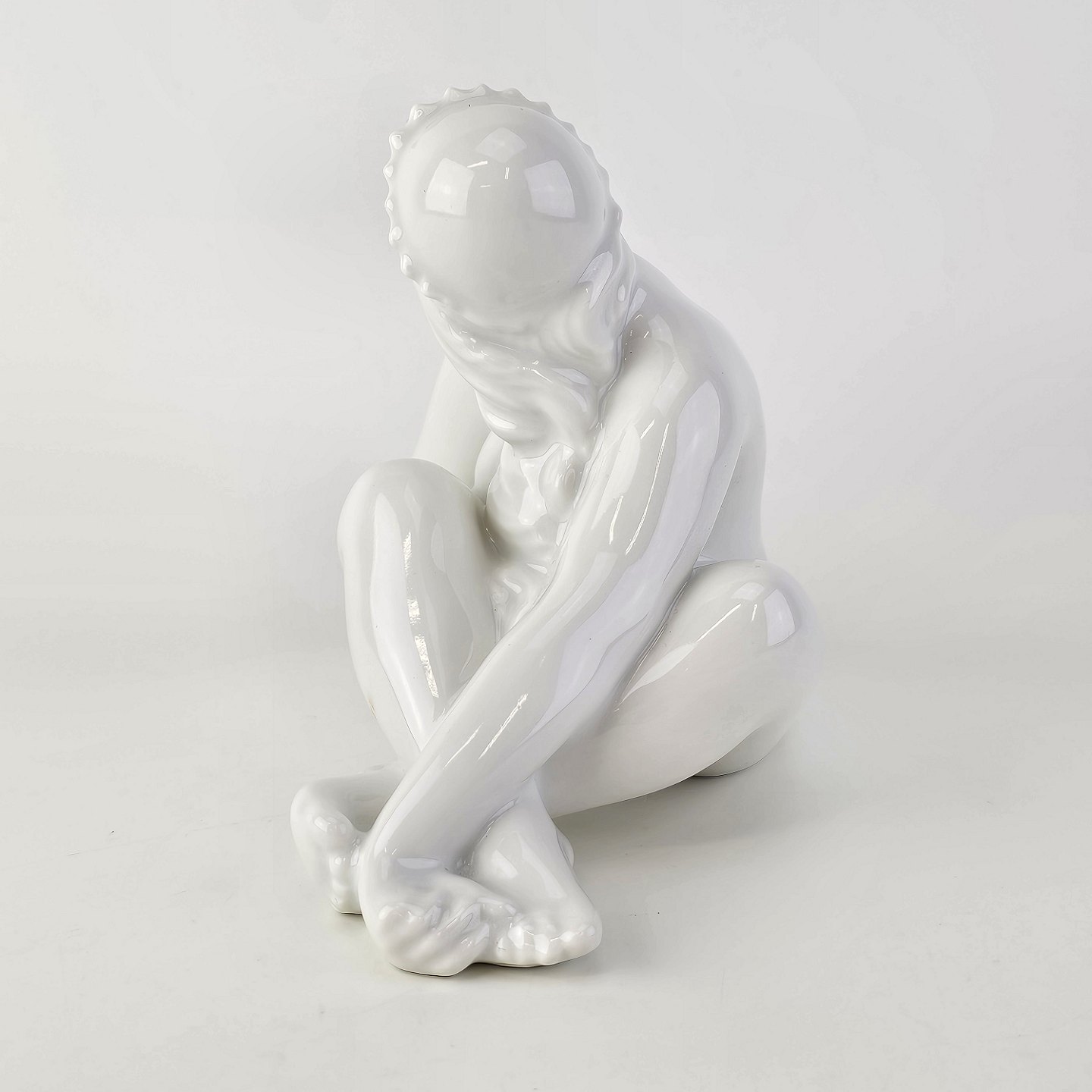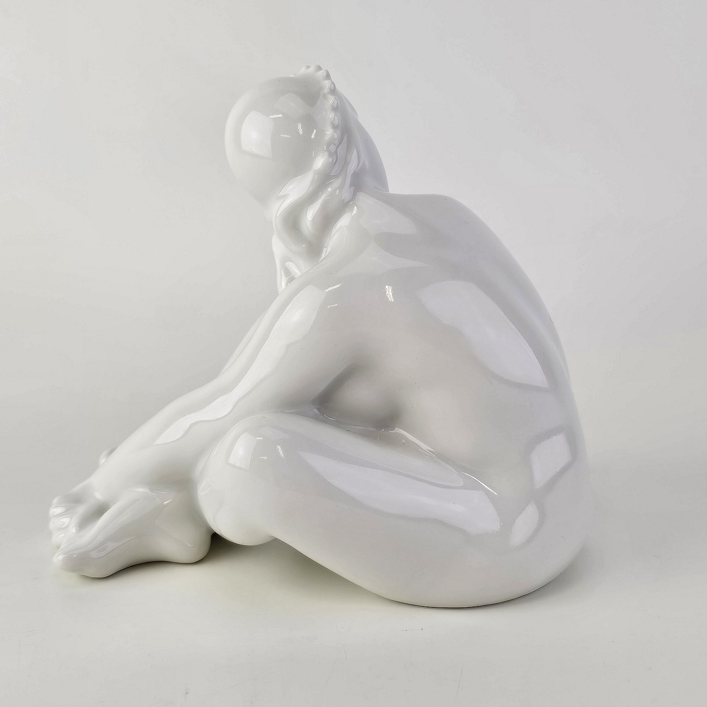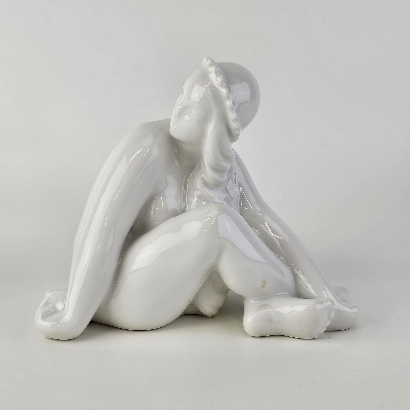 Figur i hvidt porcelæn med motiv af en siddende pigeNr. 1200