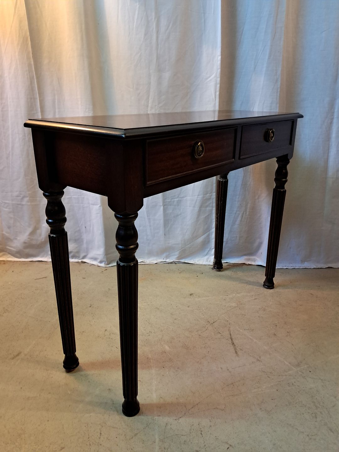 Konsol i fineret mahogni, fra 1990erne.Det har brugsspor.