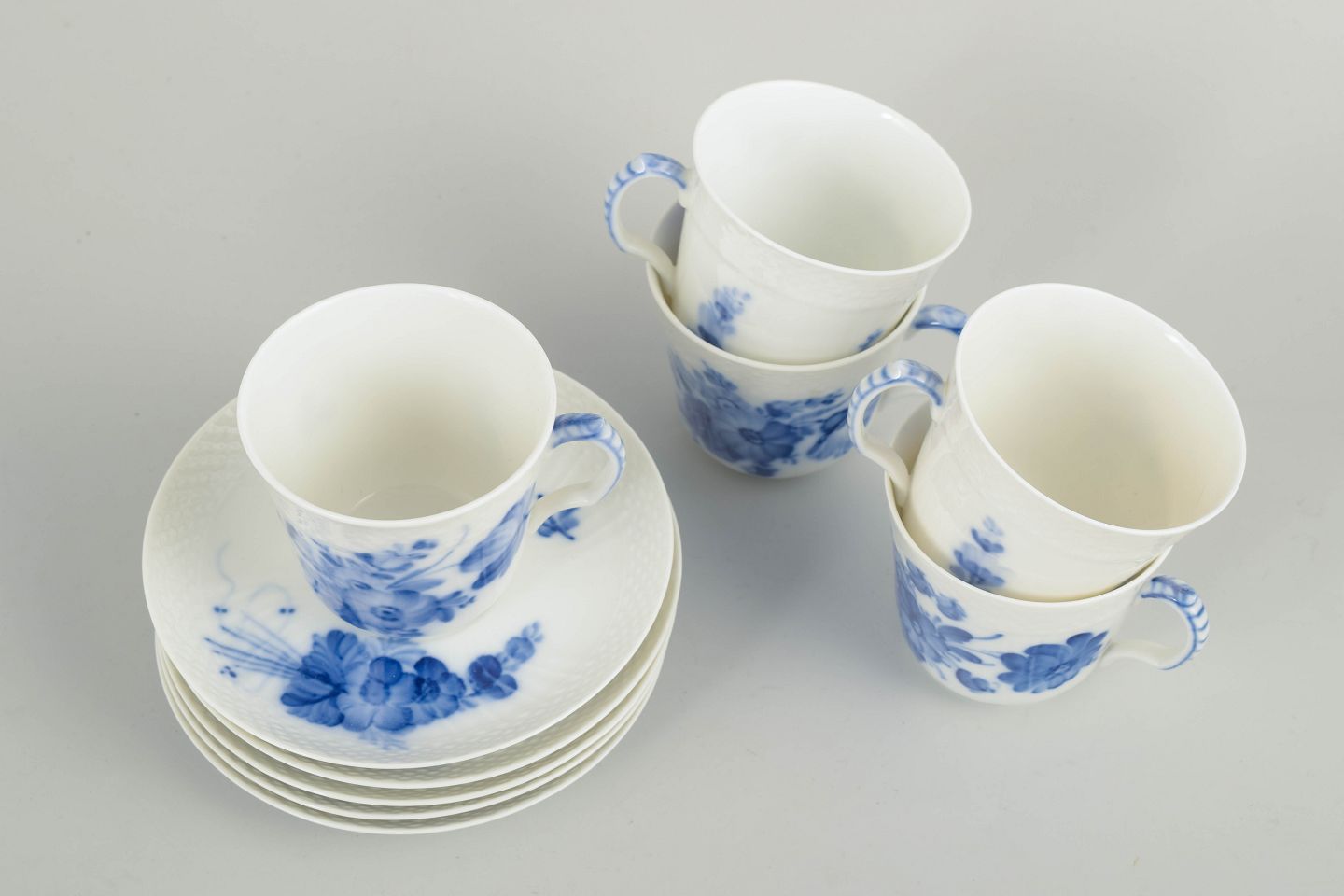 Royal Copenhagen, Blue Flower Braided coffee cups, set of 5.Set of five coffee cups with matching saucers in glazed porcelain with hand-painted underglaze decoration in the classic Blue Flower Braided pattern. Model 10/1546.