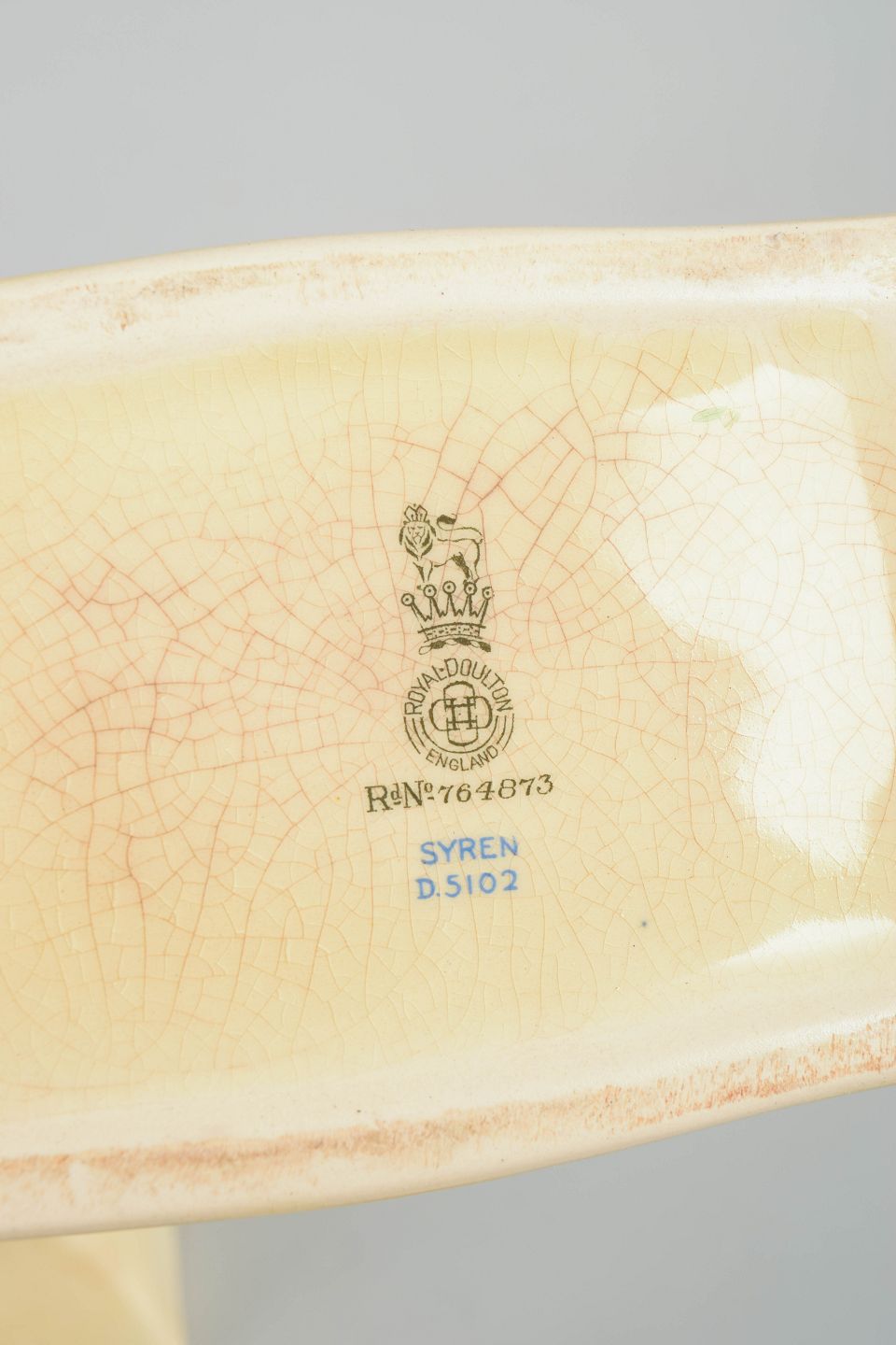 Clarice Cliff’s work for Royal Doulton represents some of the most distinctive achievements in British Art Deco ceramics. Her designs are defined by bold colour combinations, strong shapes and a modern, graphic expression that clearly set them apart from more traditional tableware of the time. The “Syren” series is a strong example of this aesthetic and is today highly sought after by collectors.