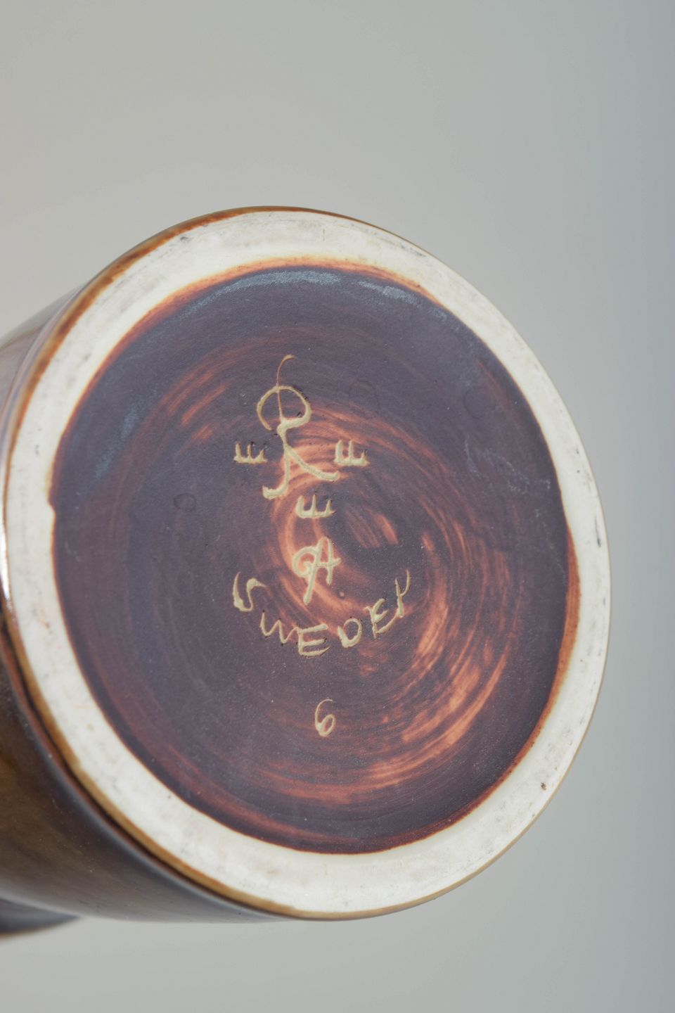 Olle Alberius was a key figure at Rörstrand, working at the intersection of industrial manufacture and artistic stoneware. During the 1960s and 1970s, he developed a series of distinctive forms emphasising proportion, surface, and the expressive qualities of glaze. His works are recognised for their architectural clarity and nuanced colour transitions and represent a high point of Swedish ceramic modernism.