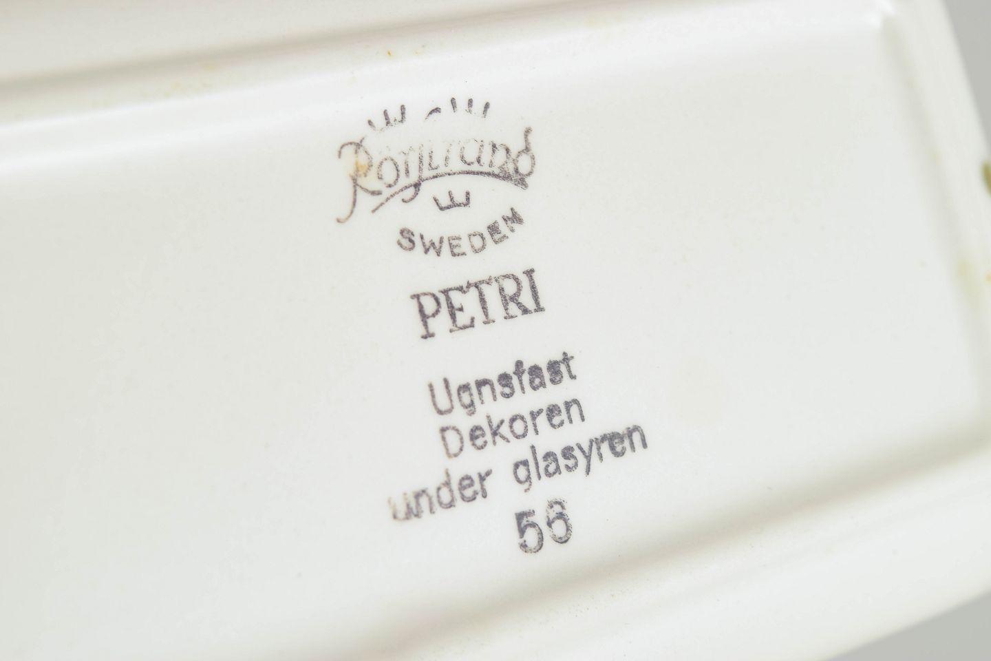 Rörstrand is one of Sweden’s oldest and most celebrated porcelain manufacturers, founded in 1726. During the mid-20th century, the factory became known for its colourful, modern designs that combined Scandinavian simplicity with artistic charm. The “Petri” series exemplifies this playful and nature-inspired approach that remains highly collectible today.