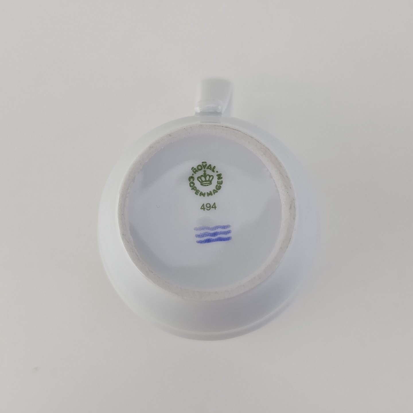 Høj kop med underkop i hvidt kongeligt porcelænKop nr. 494