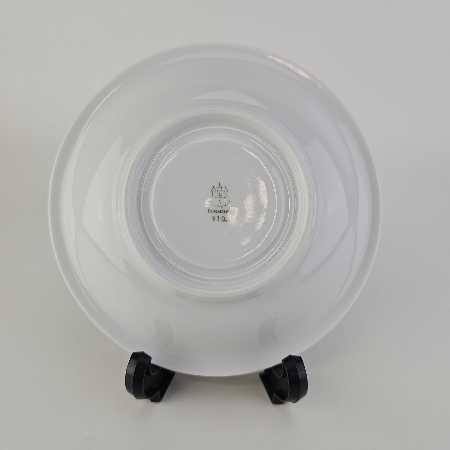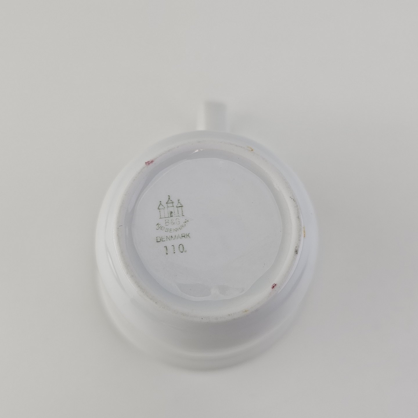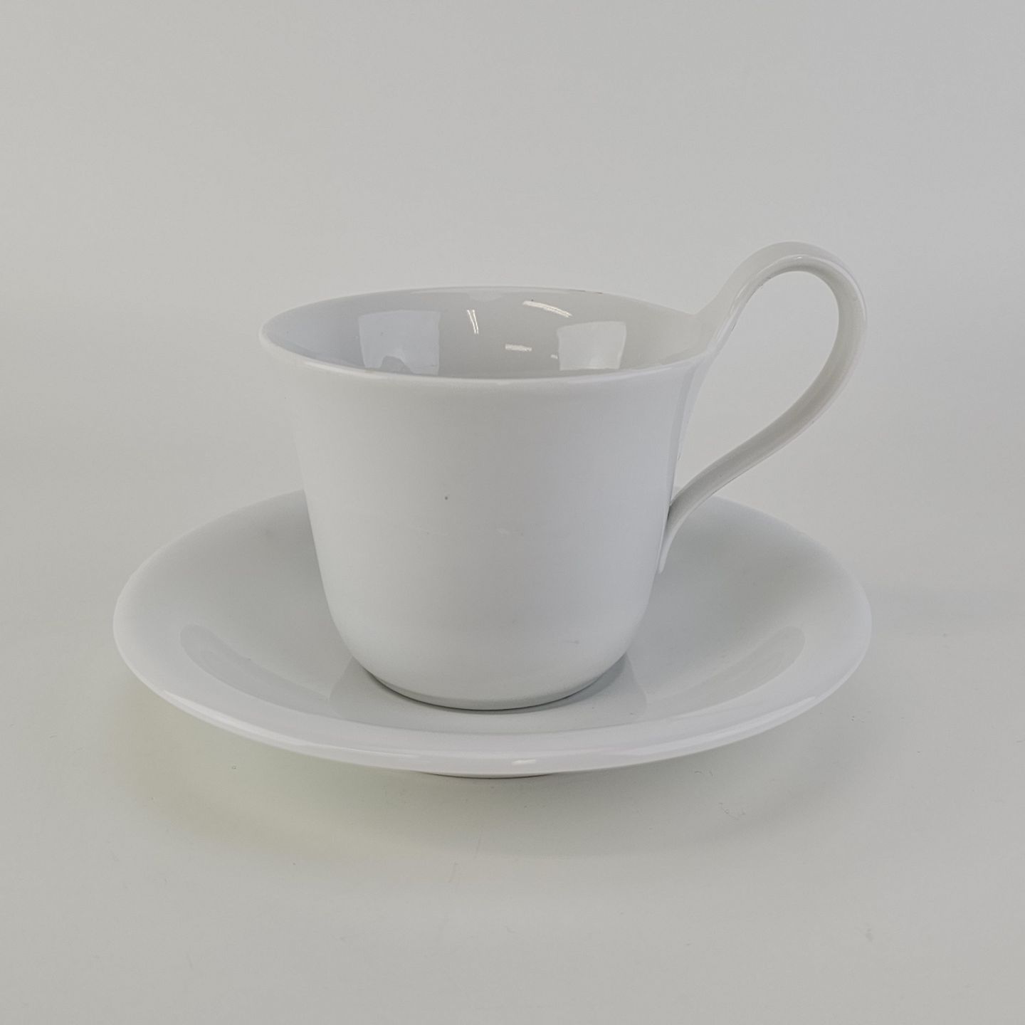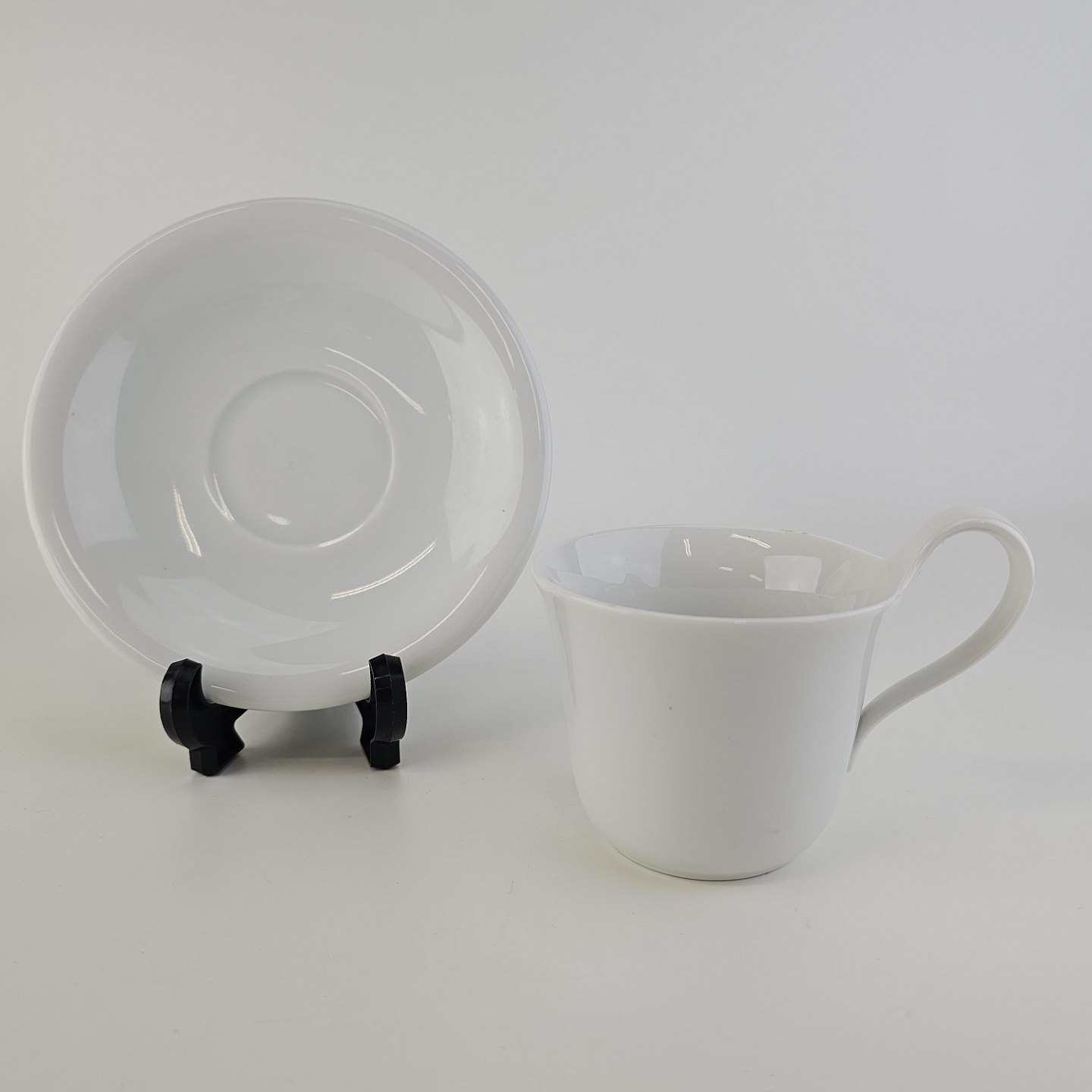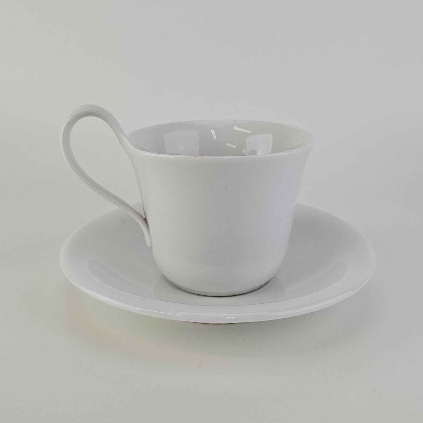 Kop med høj hank og underkop i glat hvidt porcelænNr. 110
