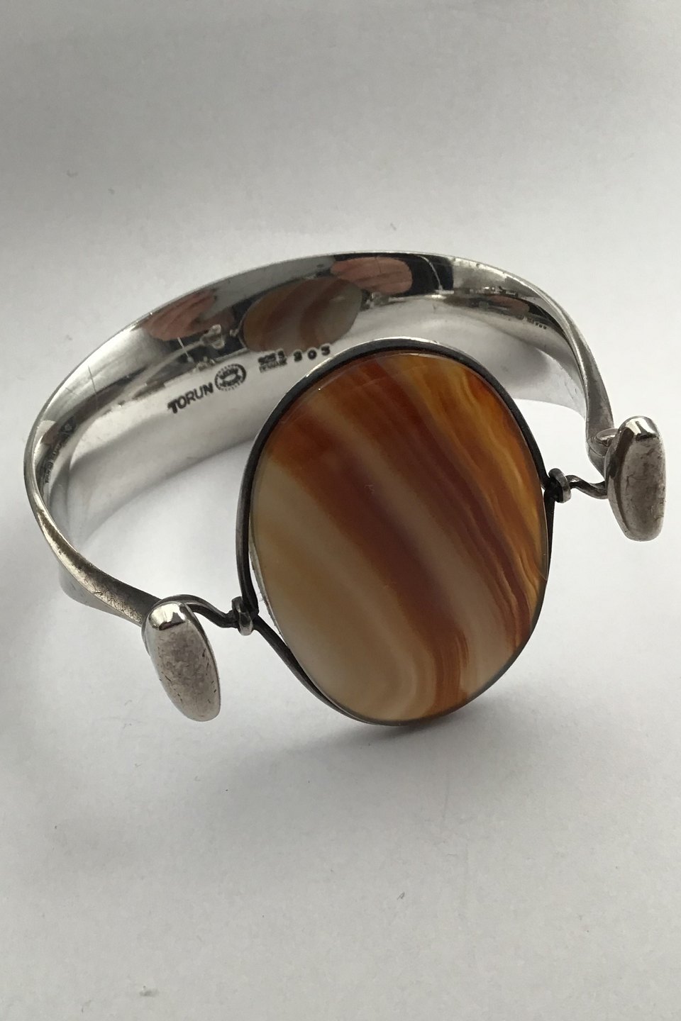 Georg Jensen Sterling Silver Torun Armring No. 203 (and Stone 203A) Measures Diam inside 5.6 cm (2.20 inch) Stone 2.8 cm x 4.5 cm(1.10 inch x 1.77 inch) Combined Weight 44.2 gr (1.56 oz)Stock: 1