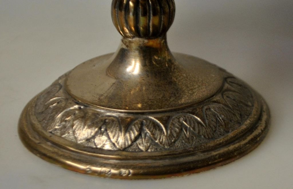 Large silver sugar bowl with cobalt blue glass insert, 19th century. Later decorated with cornucopias, tendrils, etc. Stamped: 830 and indistinct master's mark. H.: 12.5 cm. Height with handle: 22 cm. Silver weight: 267 grams.Item number: 28774