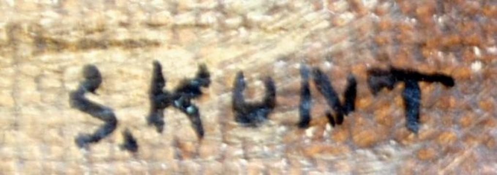 Kunt, S. (19th century): A virgin's face. Oil on canvas. Signed. 27 x 20.5 cm.Copy detail of Bartolemi Esteban Murille's work "La conception" in the Prado Museum. Madrid.