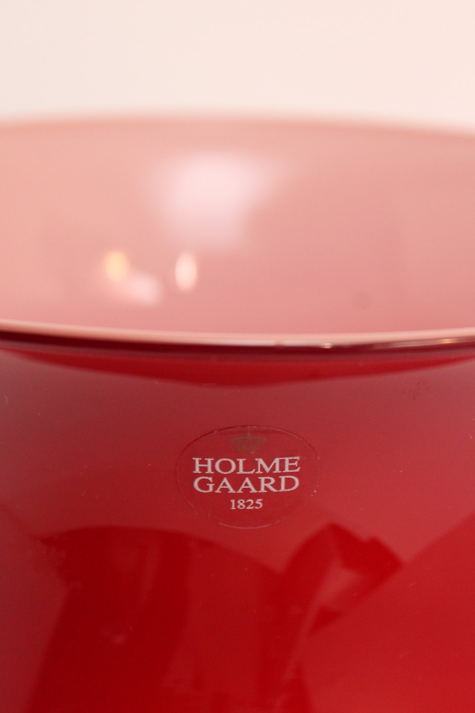 Holmegaard, Karen Blixen, Stor bordeaux rød vase støvet rosa indvendig. Designet af Anja Kjær fra 2000. Vasens form er inspireret af afrikanske kvinders hals og armringe. Højde 31 cm. Diameter 17 cm. Holmegaard label. Fin stand. Pris: 550 kr. stk. Lager: 1 Dealer