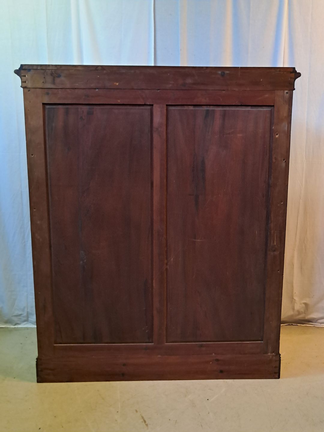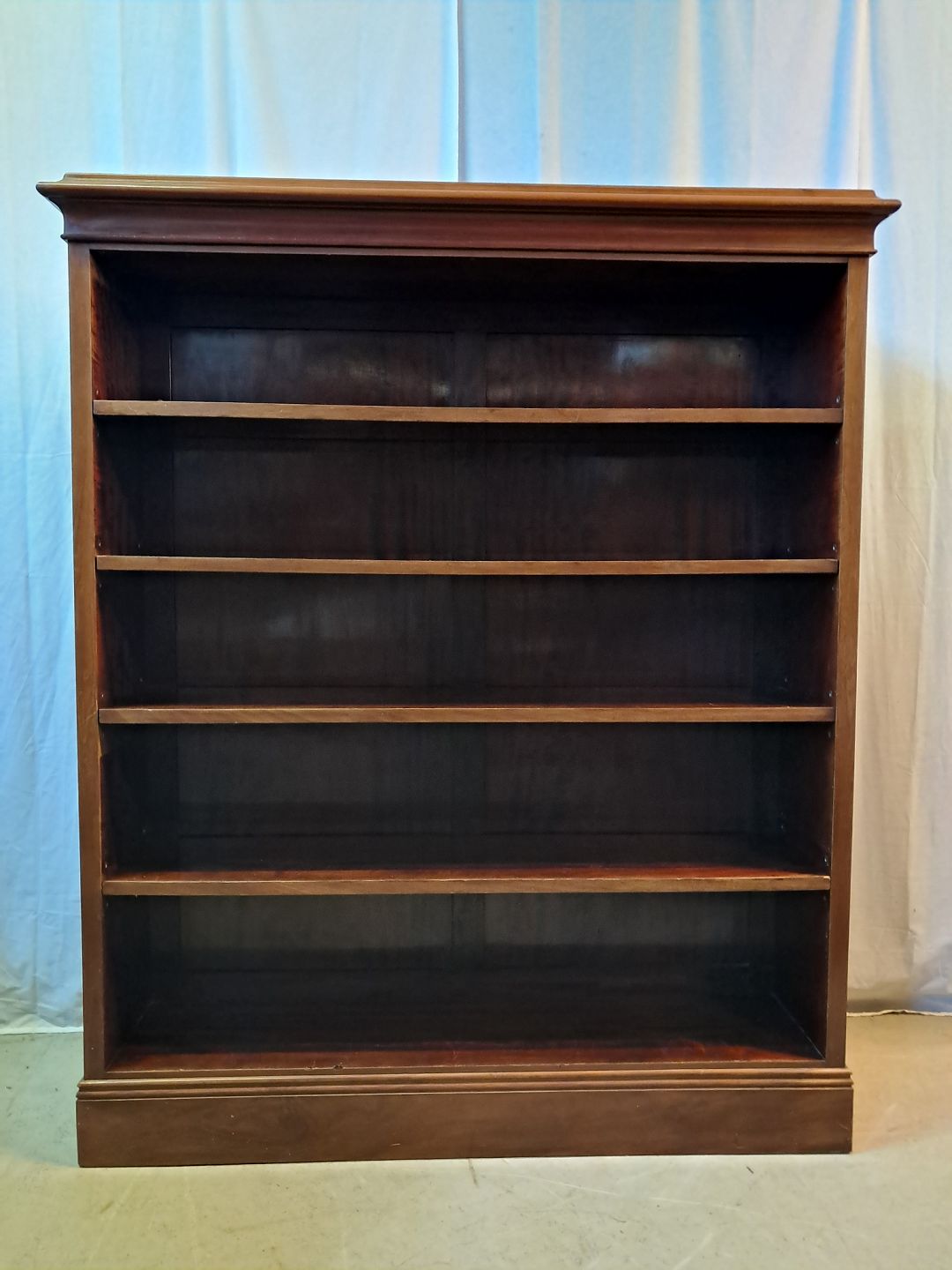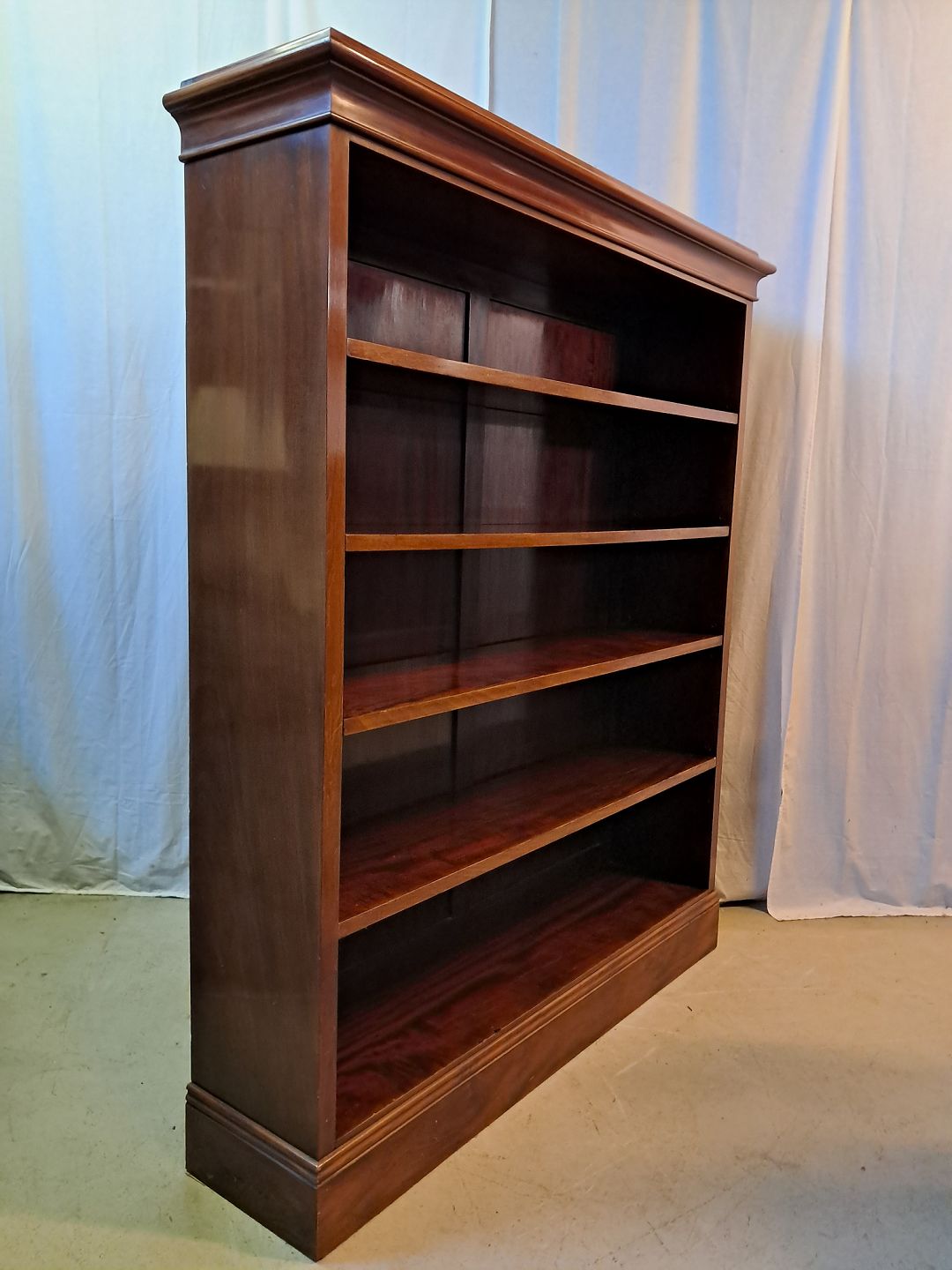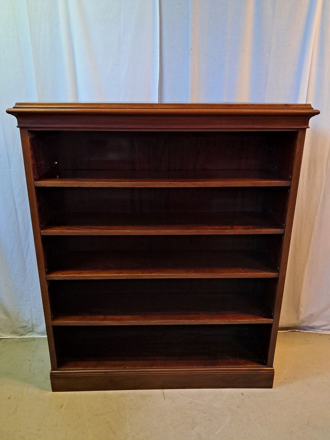 Reol i fineret mahogni, fra 1920erne.Den har brugsspor.