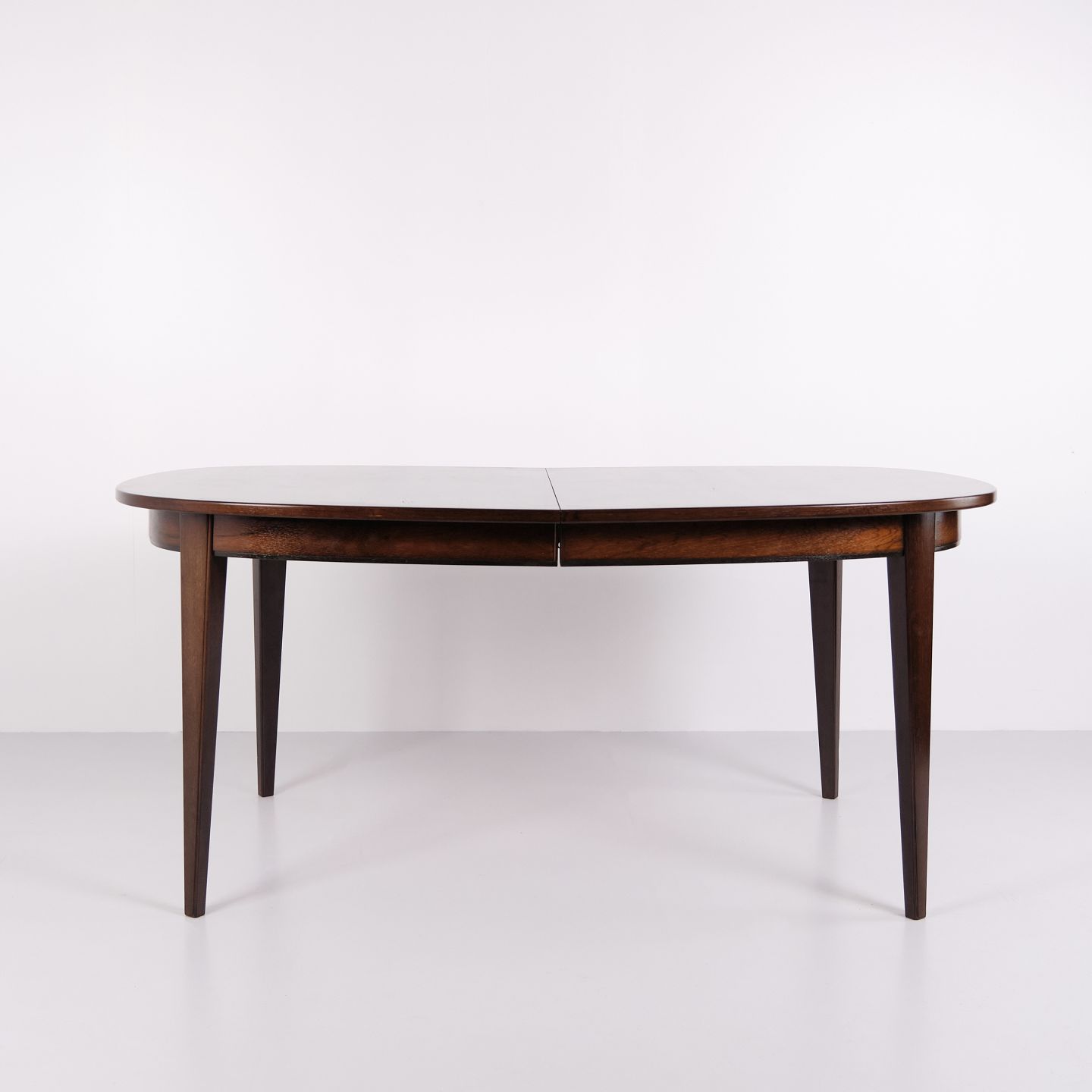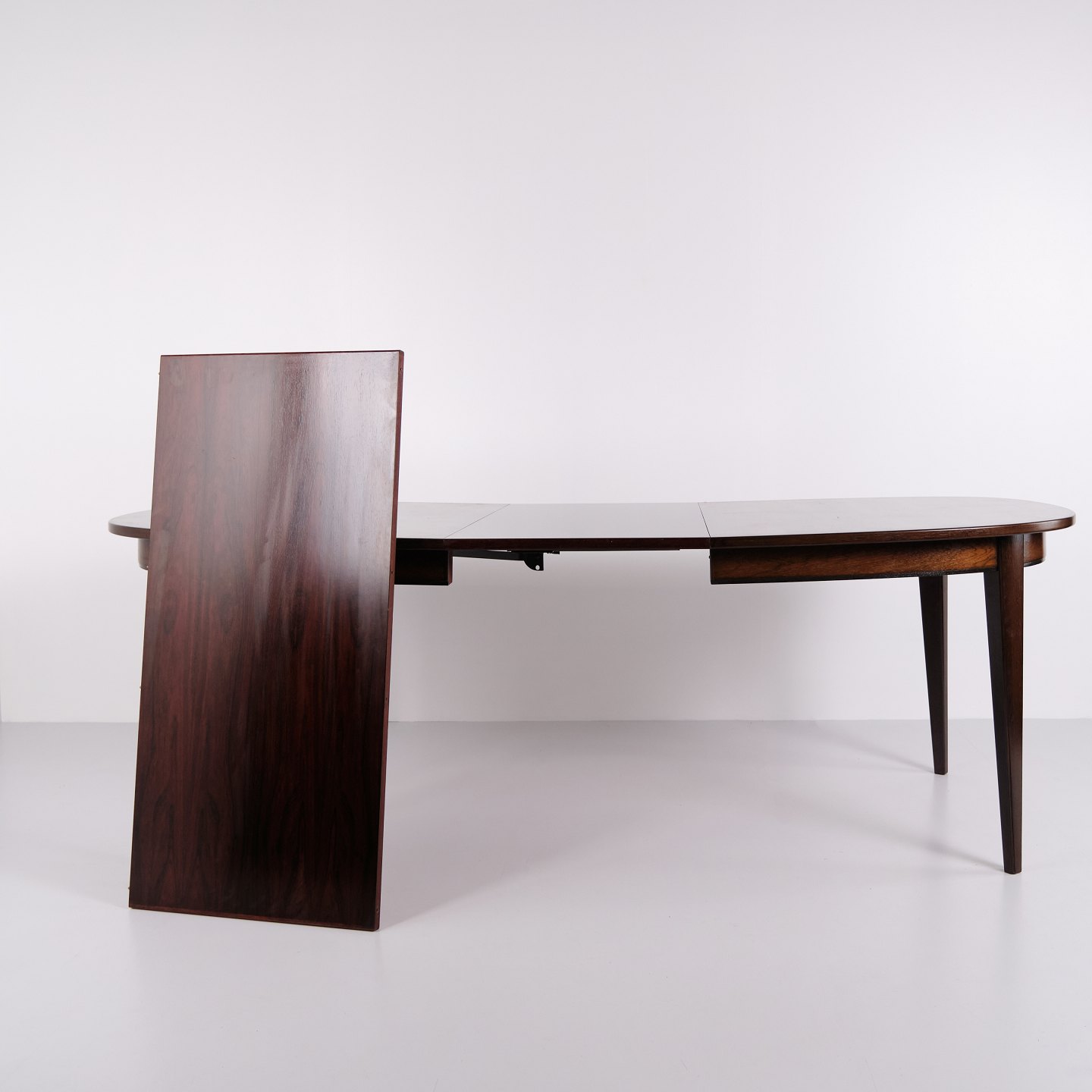 Omann Jun Model 55 dining table by Gunni Omann in rosewood with extension leaves from the 1960s. Danish design rosewood dining table.— Designer: Gunni Omann