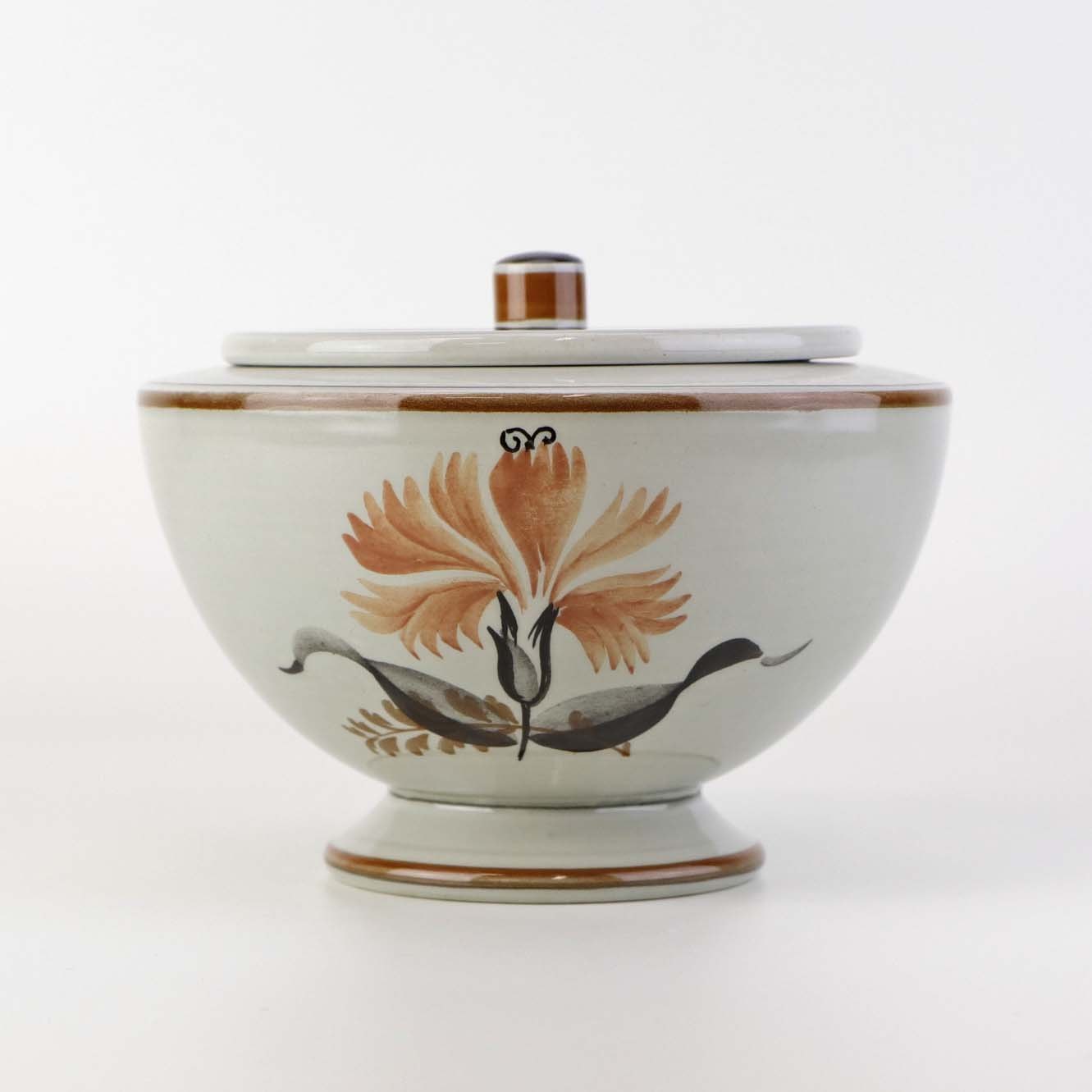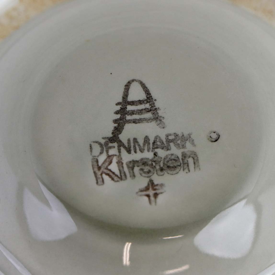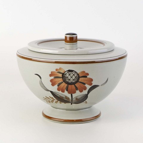 Lågskål til sukker i fajance fra stellet Kirsten, som blev fremstillet i perioden 1934-1957. Nr. 263Fomgiver Nils Thorsson