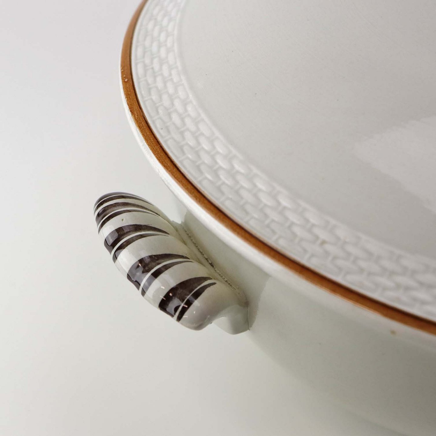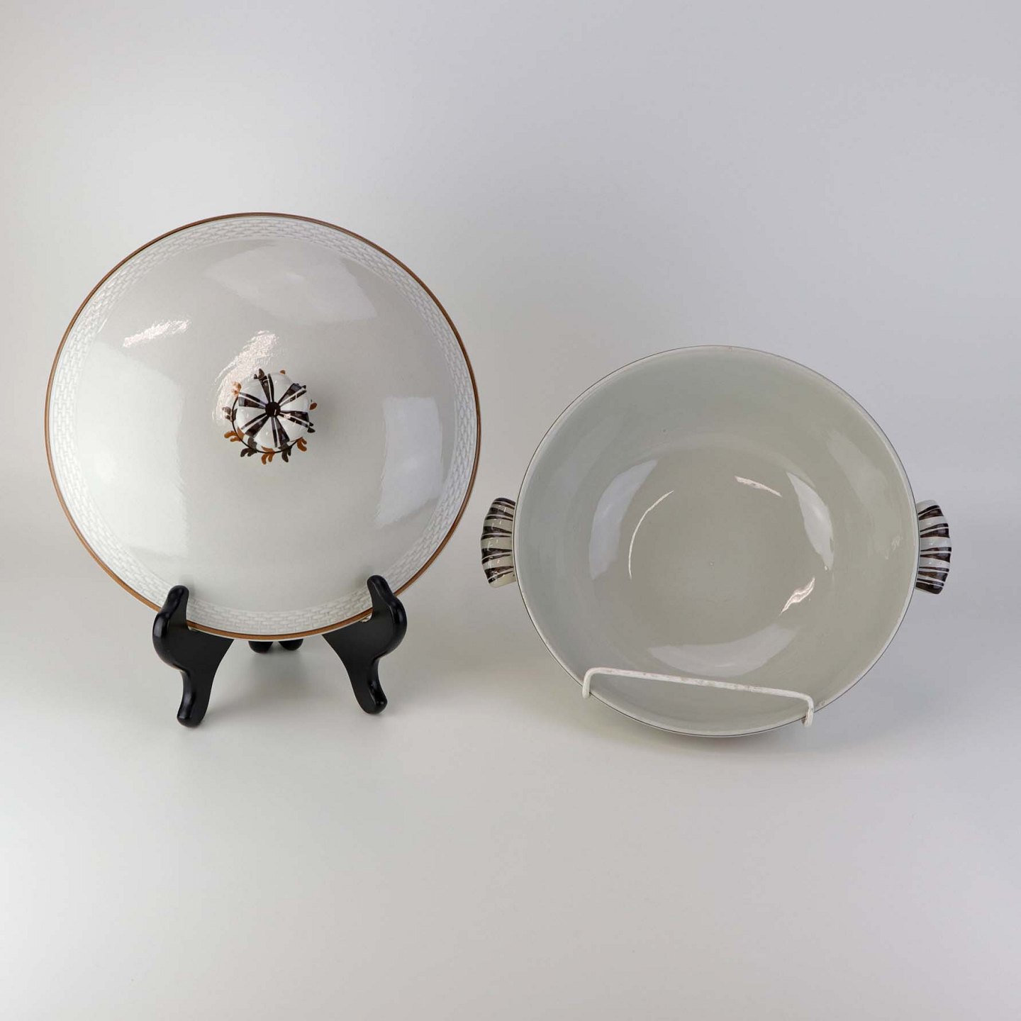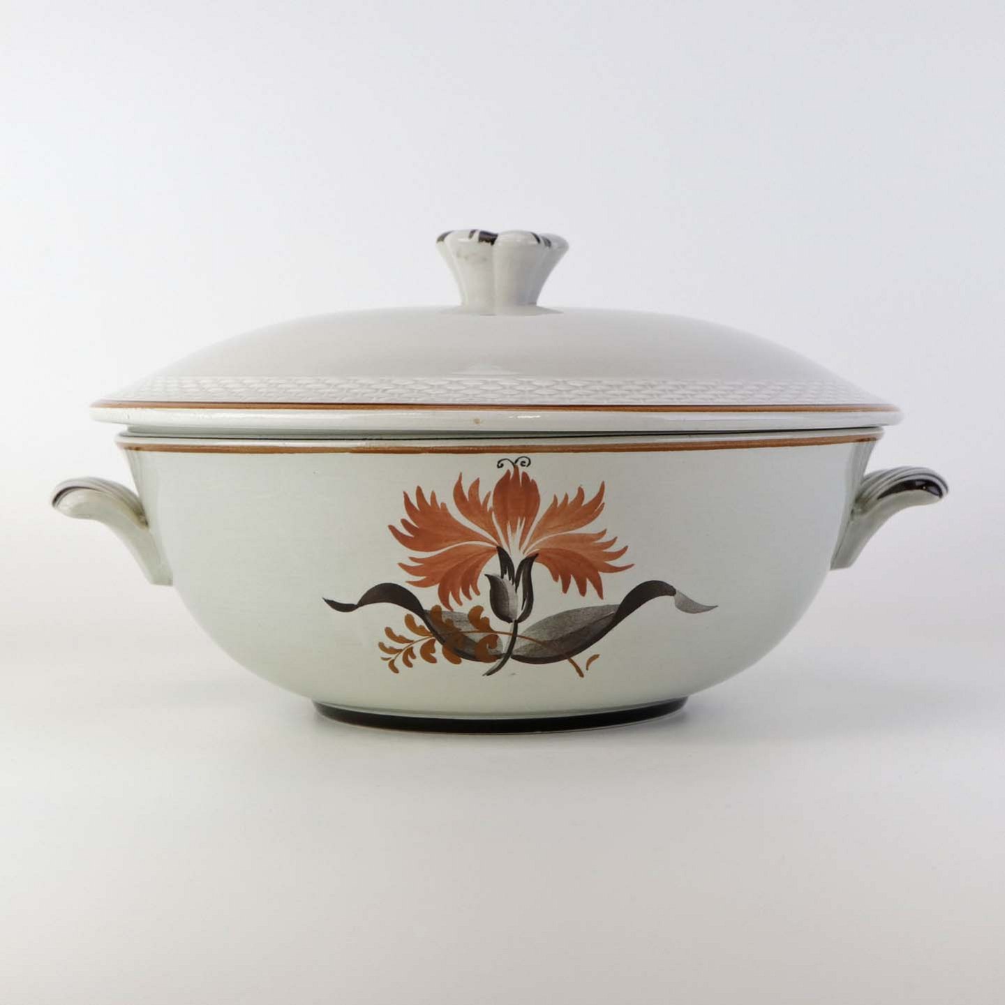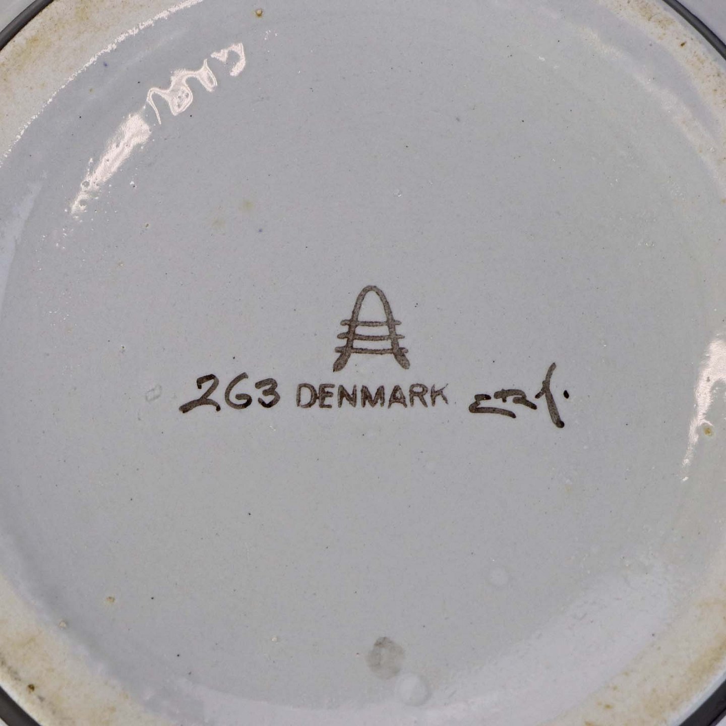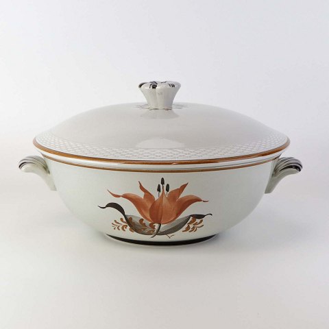 Lågfad i fajance med hanke fra stellet Kirsten, som blev fremstillet i perioden 1934-1957. Nr. 263Fomgiver Nils Thorsson