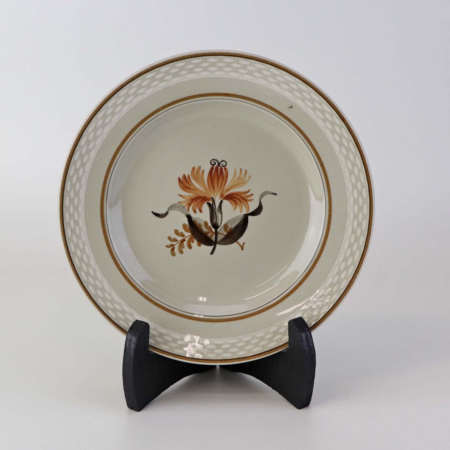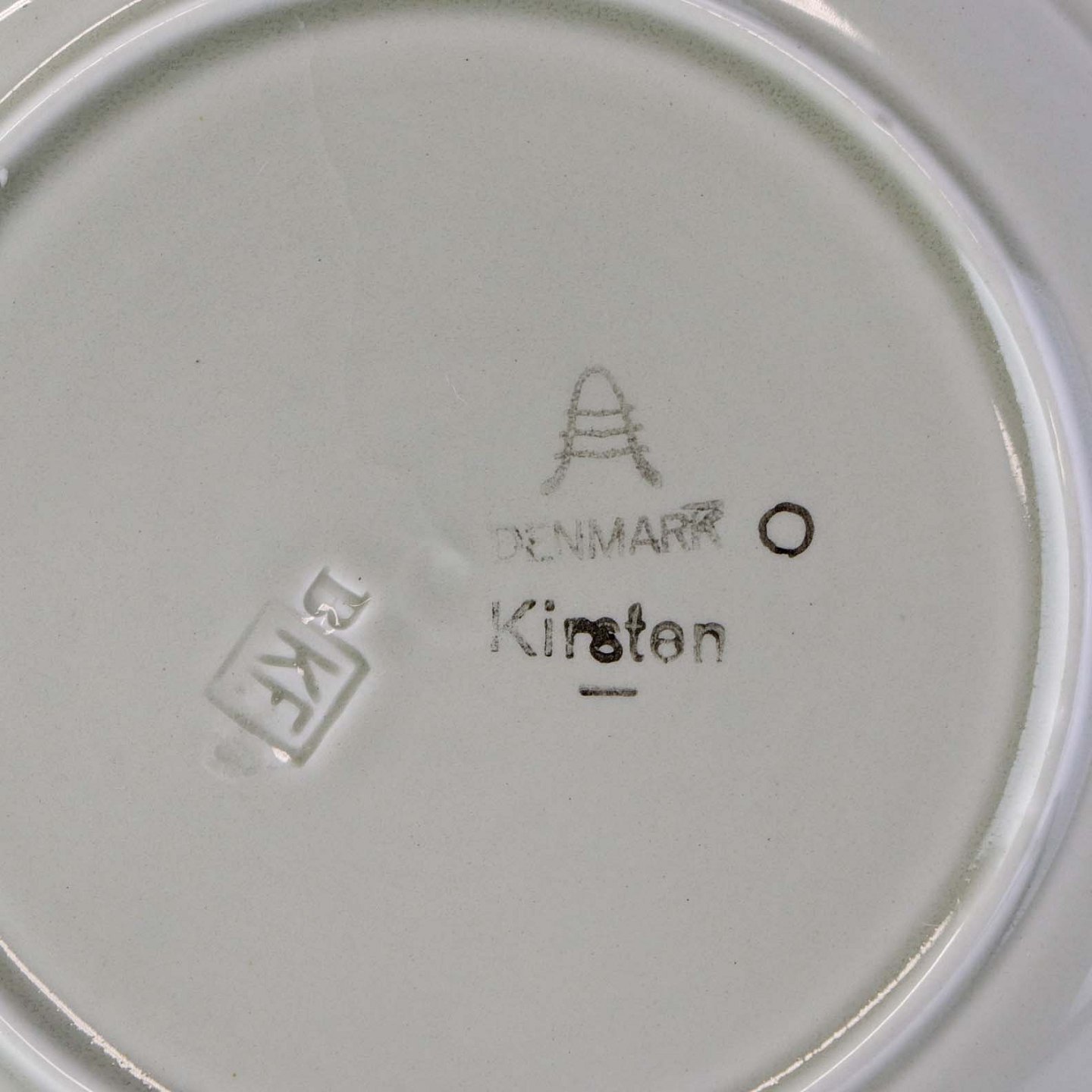 Desserttallerken i fajance fra stellet Kirsten, som blev fremstillet i perioden 1934-1957. Fomgiver Nils Thorsson