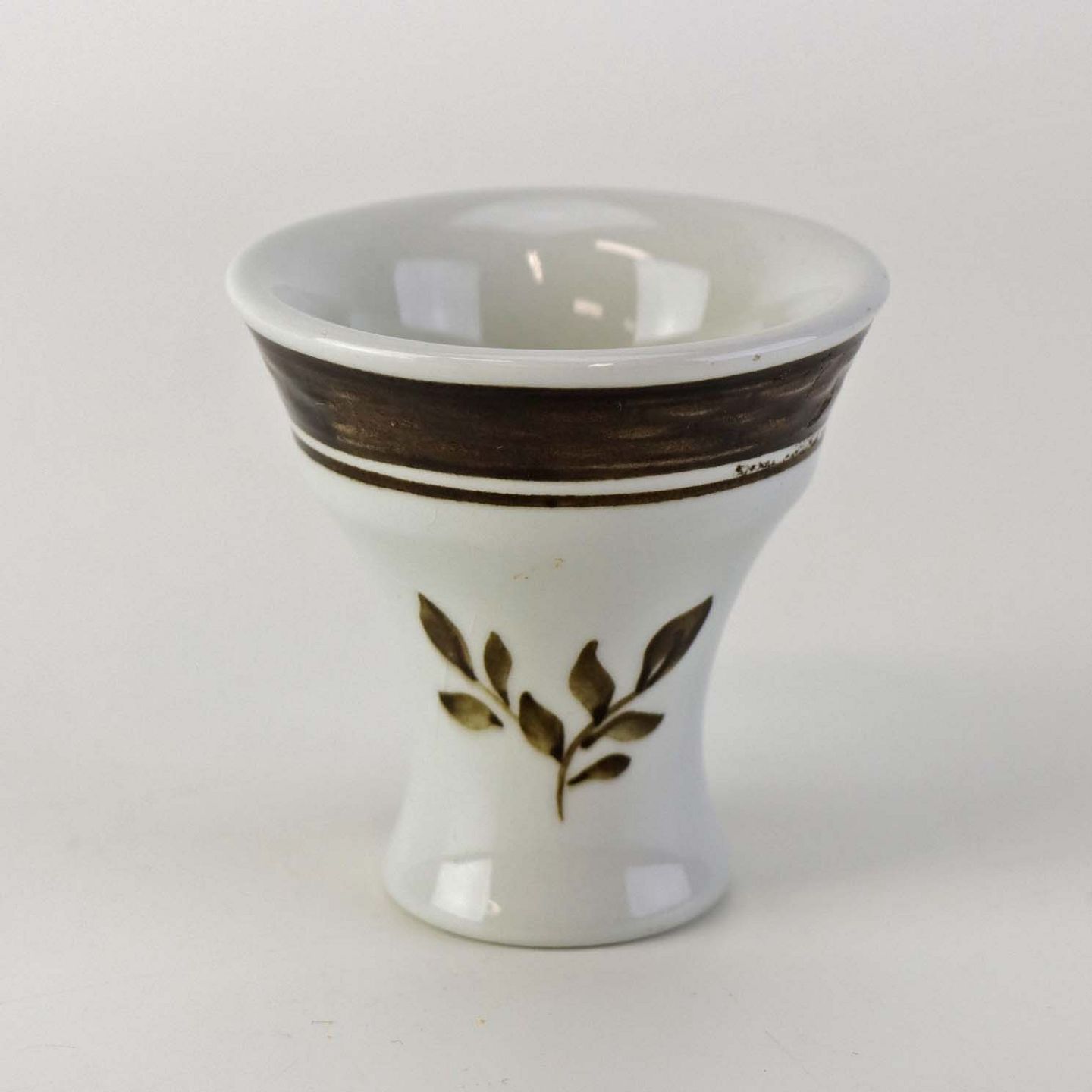 Æggebæger i fajance fra stellet Brun Tranquebar fra år 1919. Nr 45/1006 Fomgiver Chr. Joachim