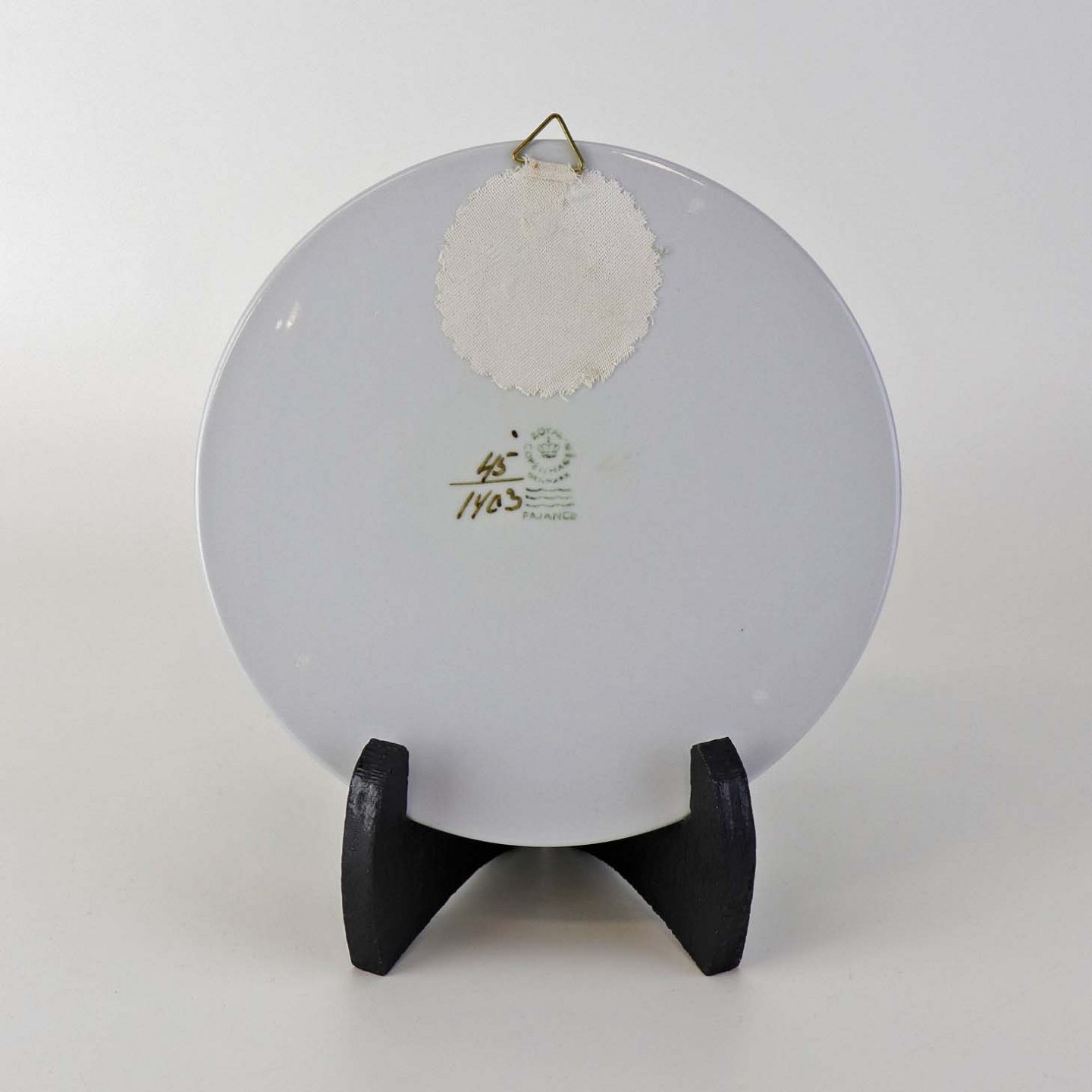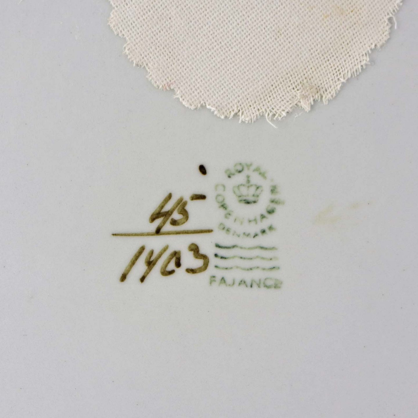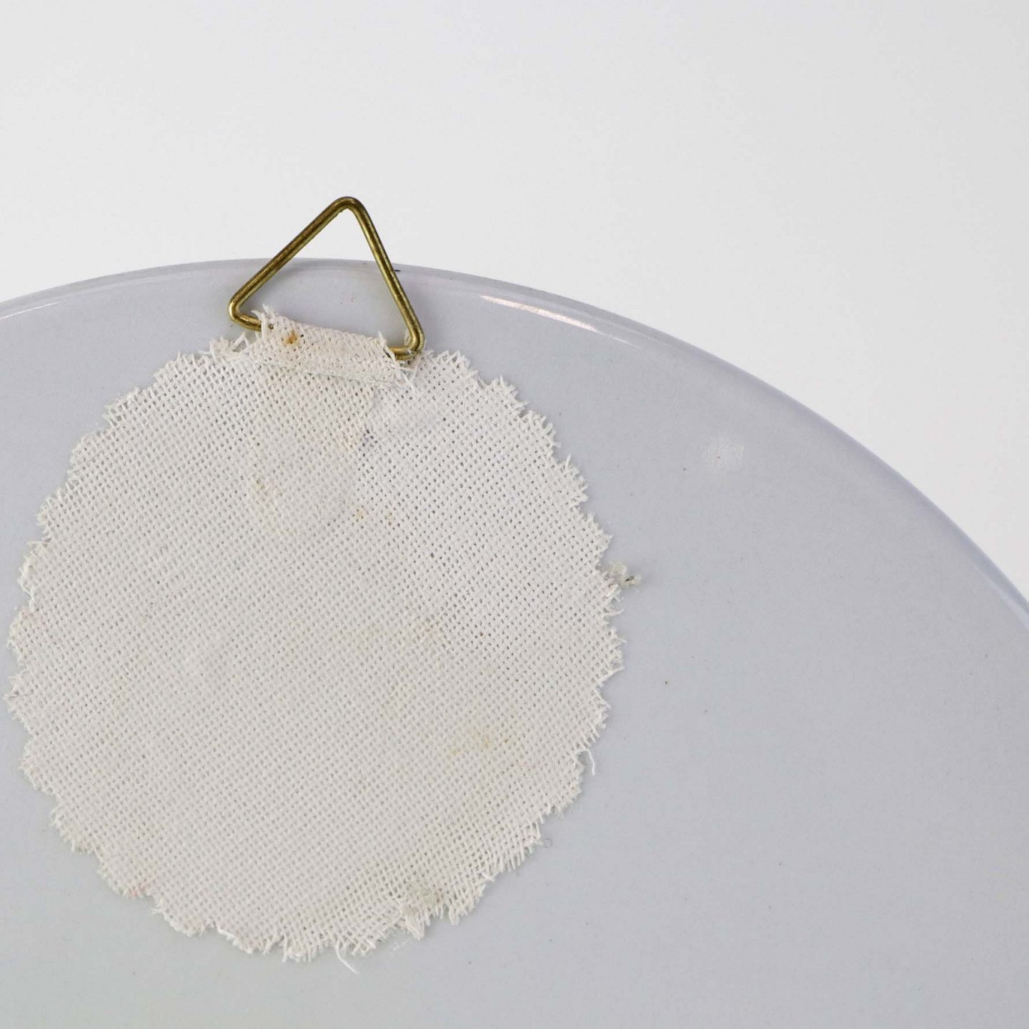 Rund smørbrik i fajance med ophæng fra stellet Brun Tranquebar fra år 1919. Nr 45/1403 Fomgiver Chr. Joachim