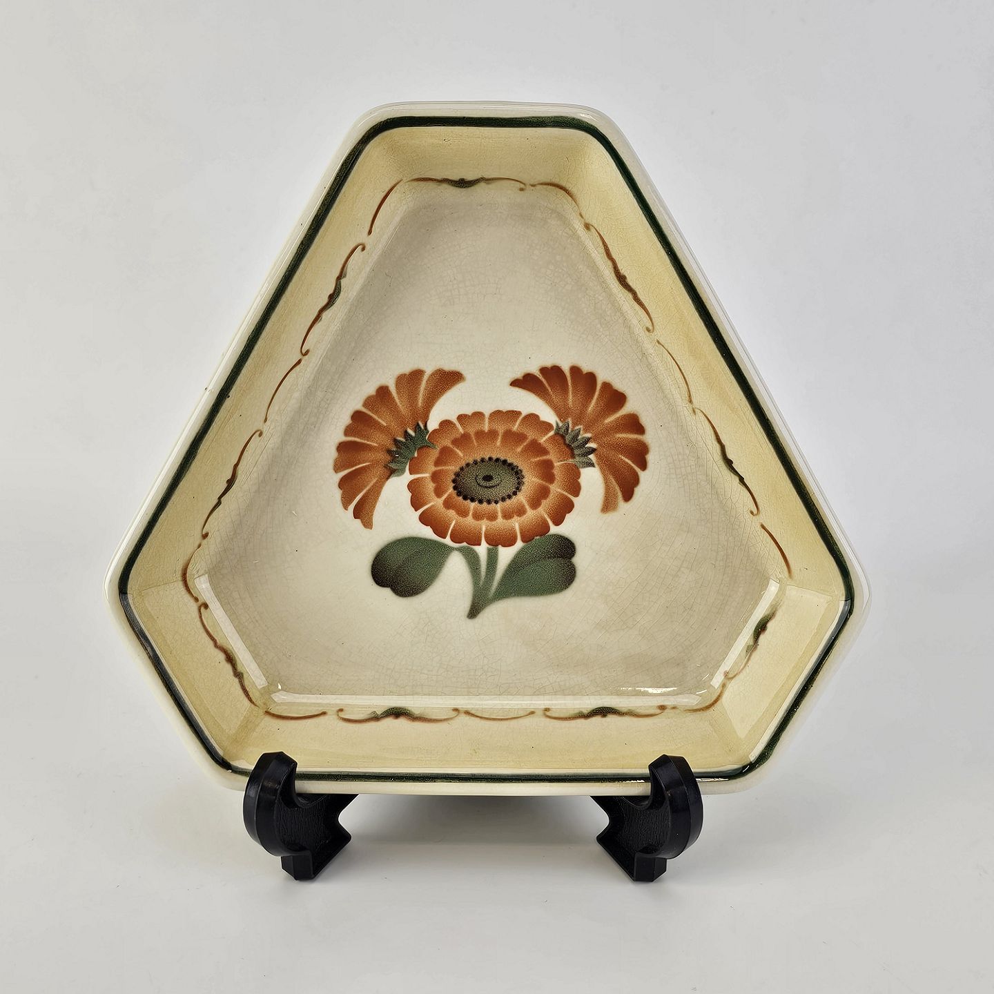 Morgenfrue er gul fajance med motiv af orange morgenfruer