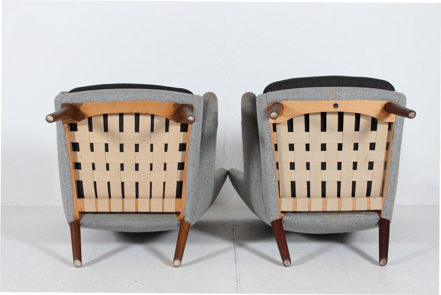 solid beech, upholstered with light and dark grey wool