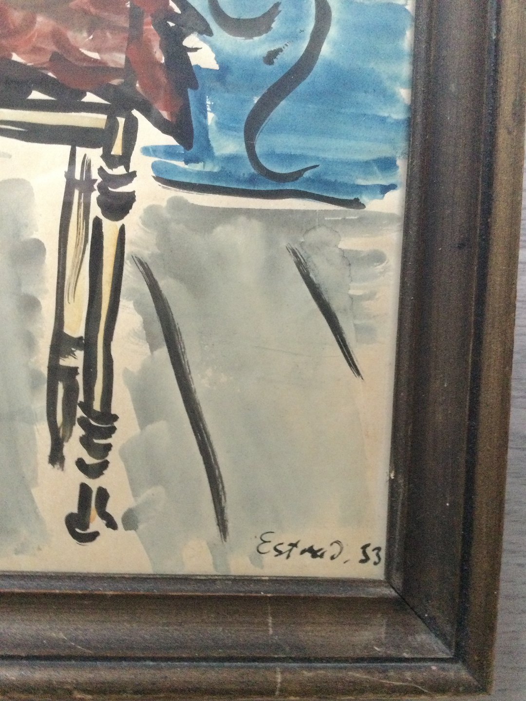 Akvarel af Leo Estvad 1933 - Frodig kvinde i interiør.