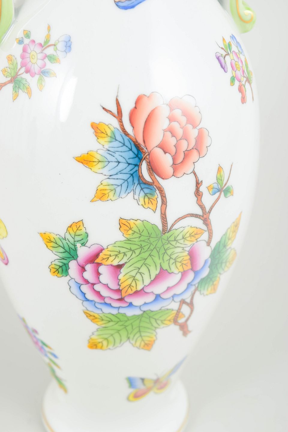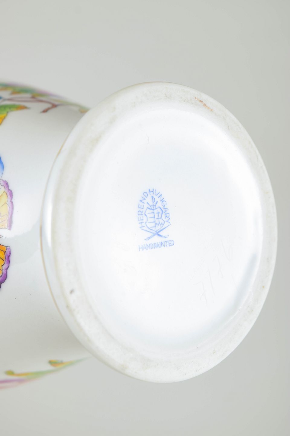 Herend, large vase.Large baluster-form porcelain vase with hand-painted decoration in the Queen Victoria pattern, featuring colourful flowers and butterflies with gilt edging.