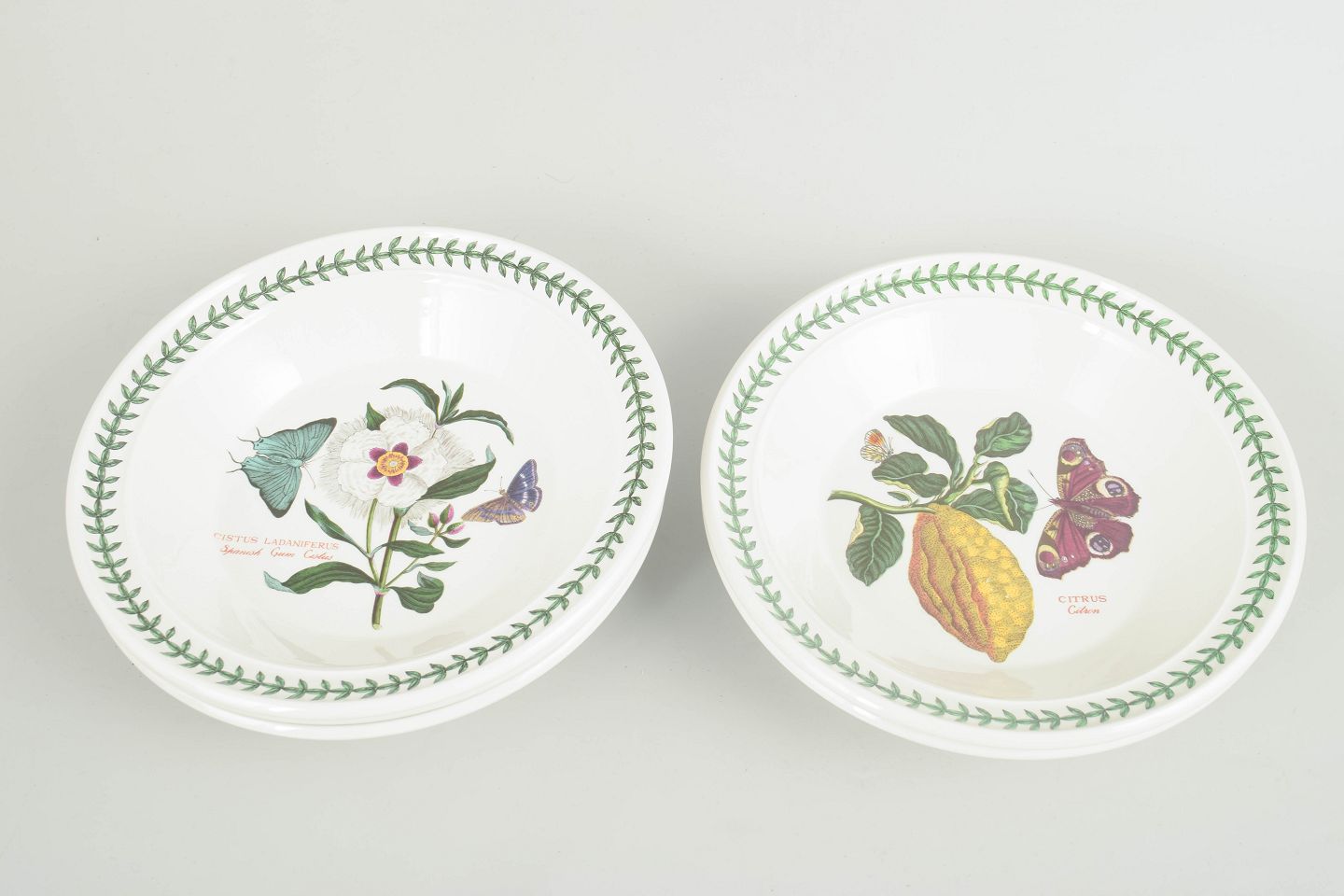 Portmeirion England, set of 5 deep plates.Set of 5 deep faience plates by Portmeirion, decorated in “The Botanic Garden” series with botanical motifs and the characteristic green leaf border.