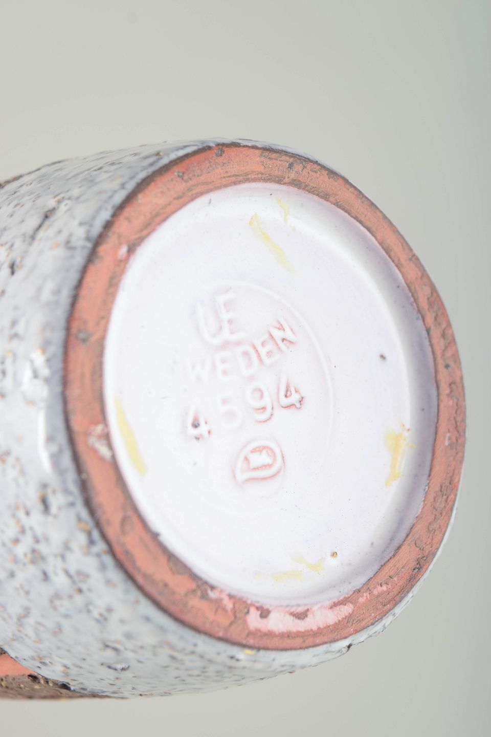 Mari Simmulson (1911–2000) was a Swedish ceramic artist and designer who worked for many years at Upsala Ekeby. She is known for her experimental surfaces and decorative structures, where relief, rhythm and colour play are key elements. Her work from the 1950s and 60s reflects the Scandinavian modernist interest in materiality and clarity of form. Upsala Ekeby was one of Sweden’s leading ceramic producers during this period, and its production is today highly regarded by collectors.