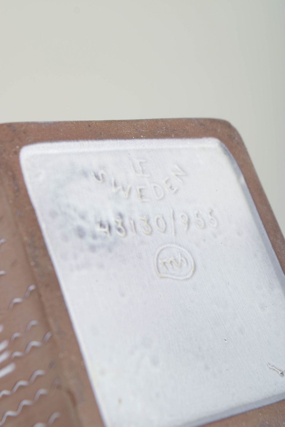 Mari Simmulson (1911–2000) was a Swedish ceramic artist and designer who worked for many years at Upsala Ekeby. She is recognised for boldly decorated forms with strong graphic expression, often translating natural inspiration into stylised, repeated motifs within Scandinavian modernism. Upsala Ekeby was one of Sweden’s leading ceramic producers in the mid-20th century, combining industrial production with artistic design, and its works from this period are today highly regarded by collectors.