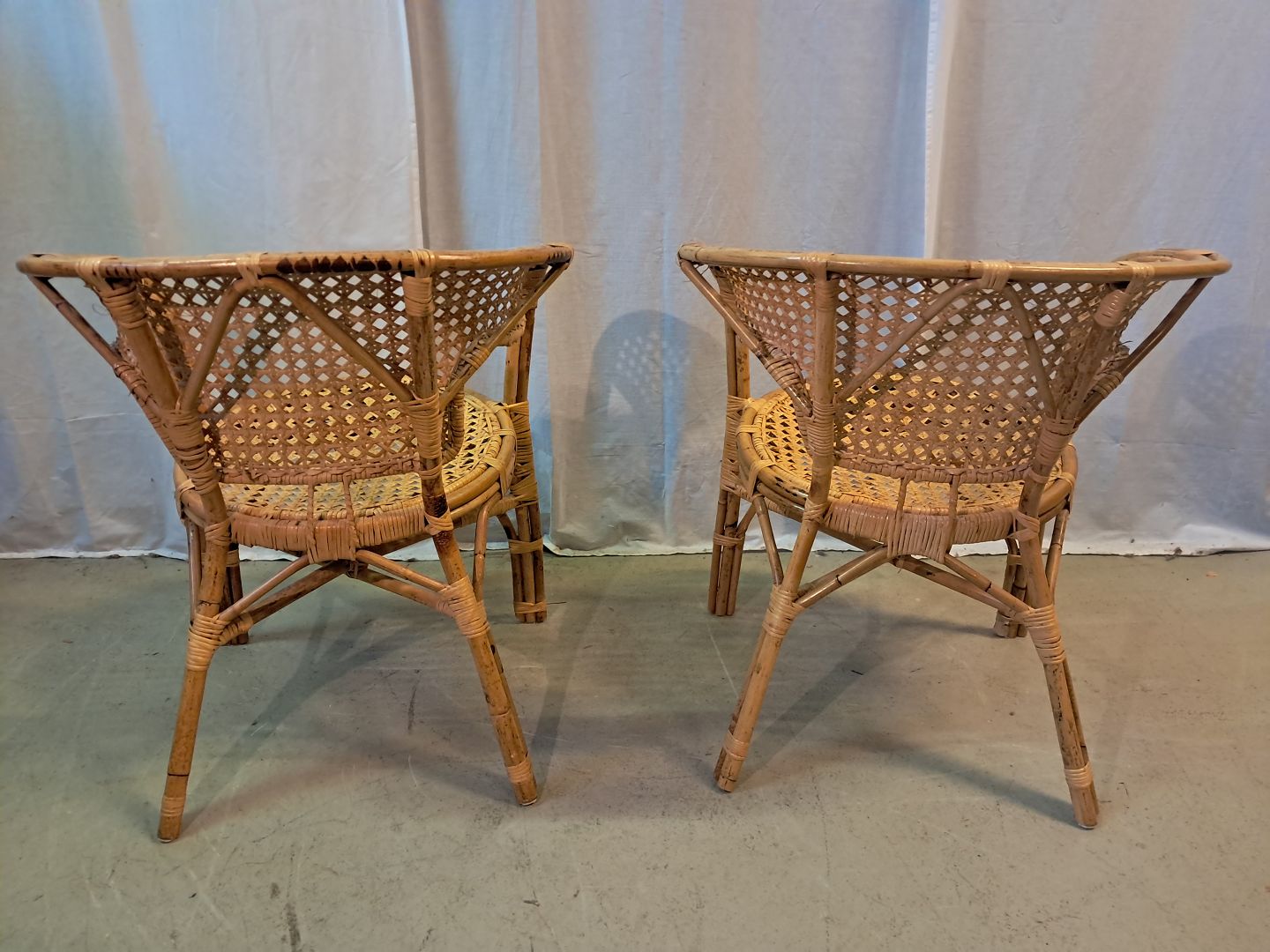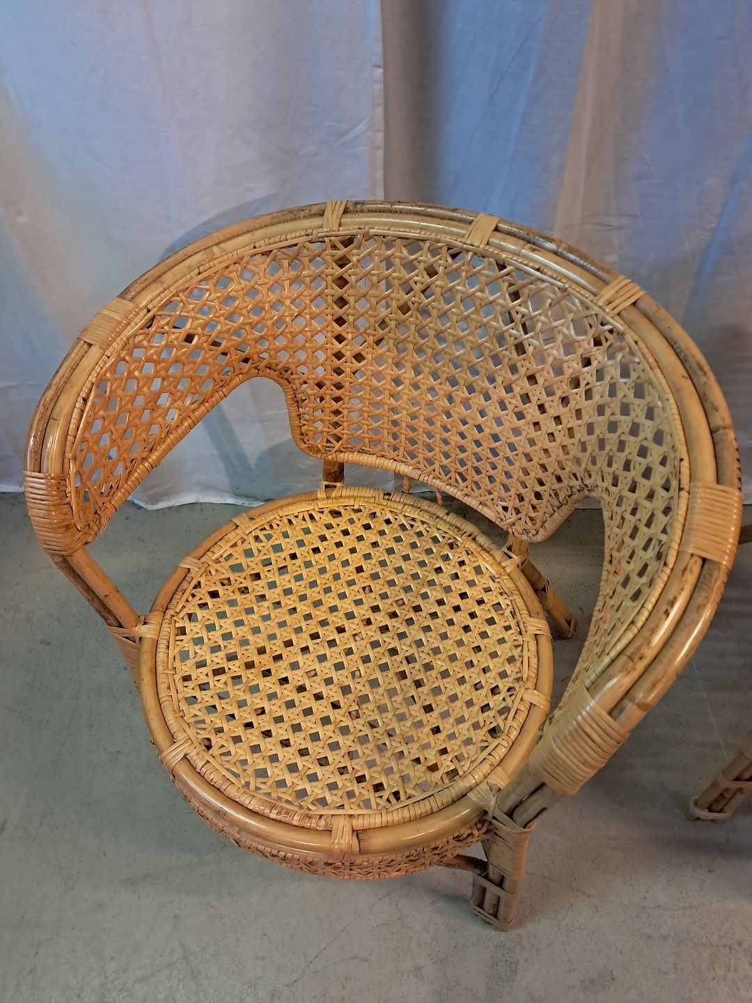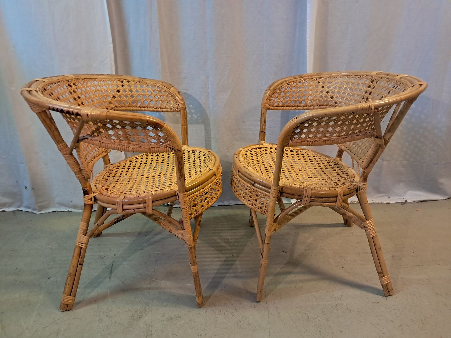 2 Armstoel i rørflet, fra 1980erne.De har brugsspor og defekter.