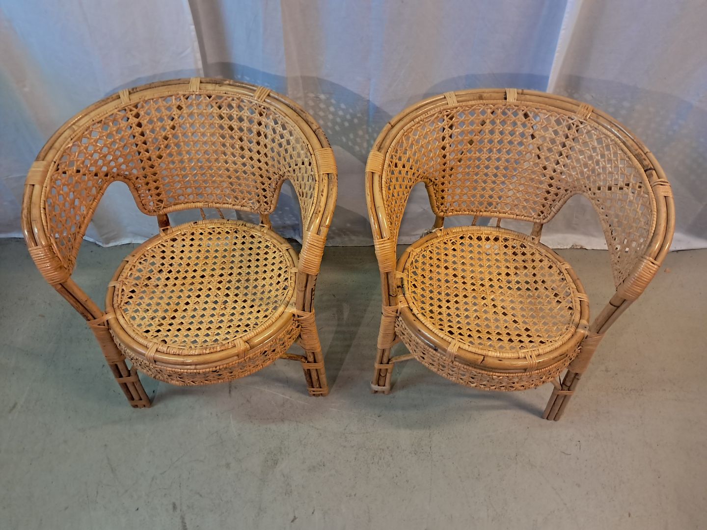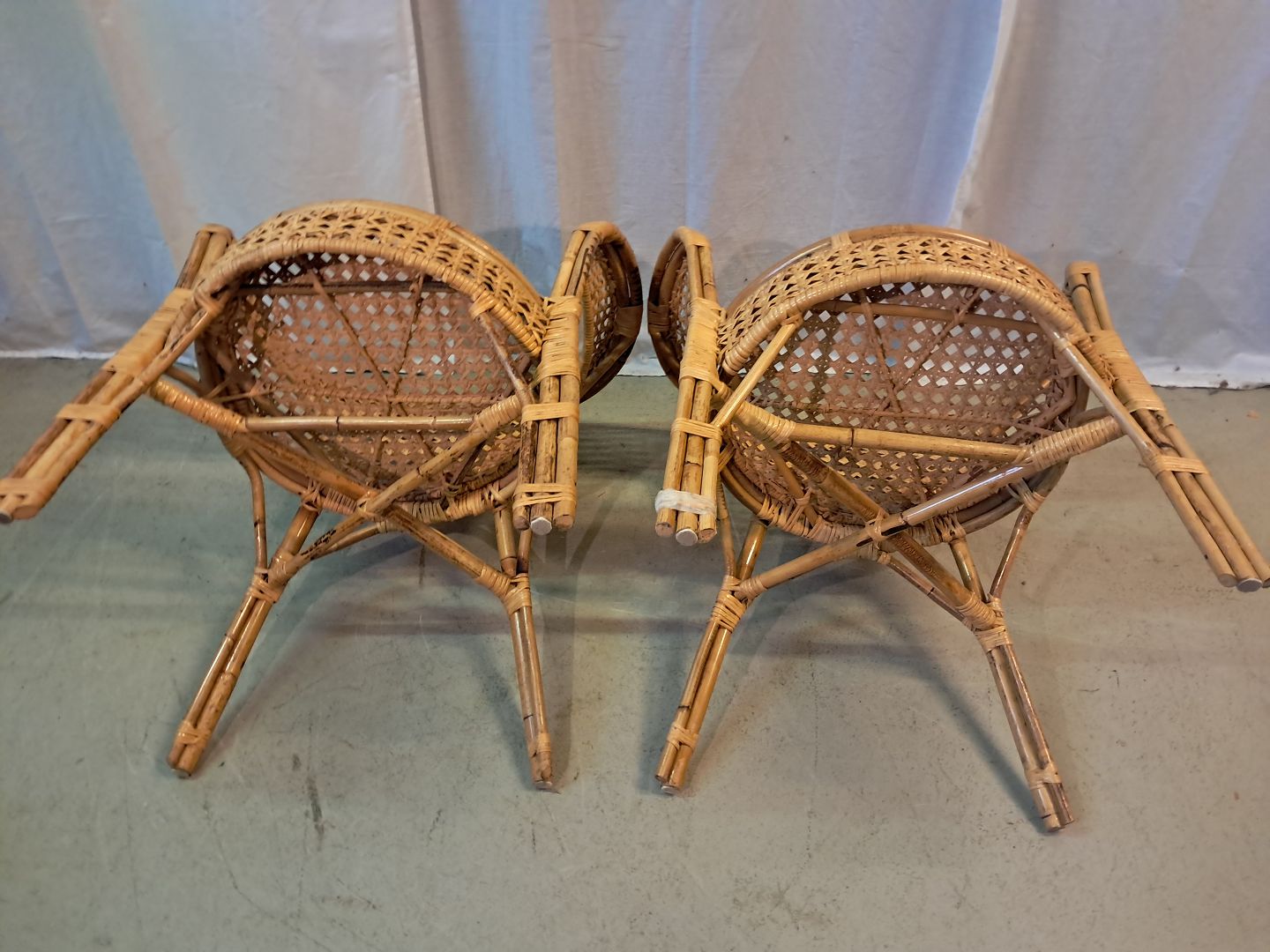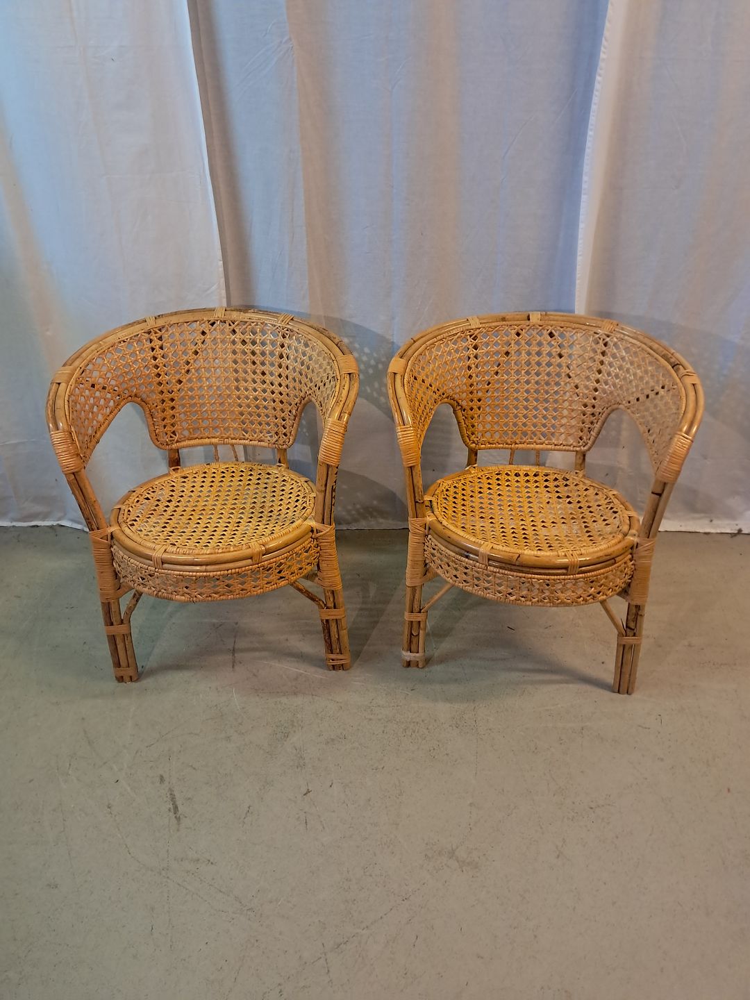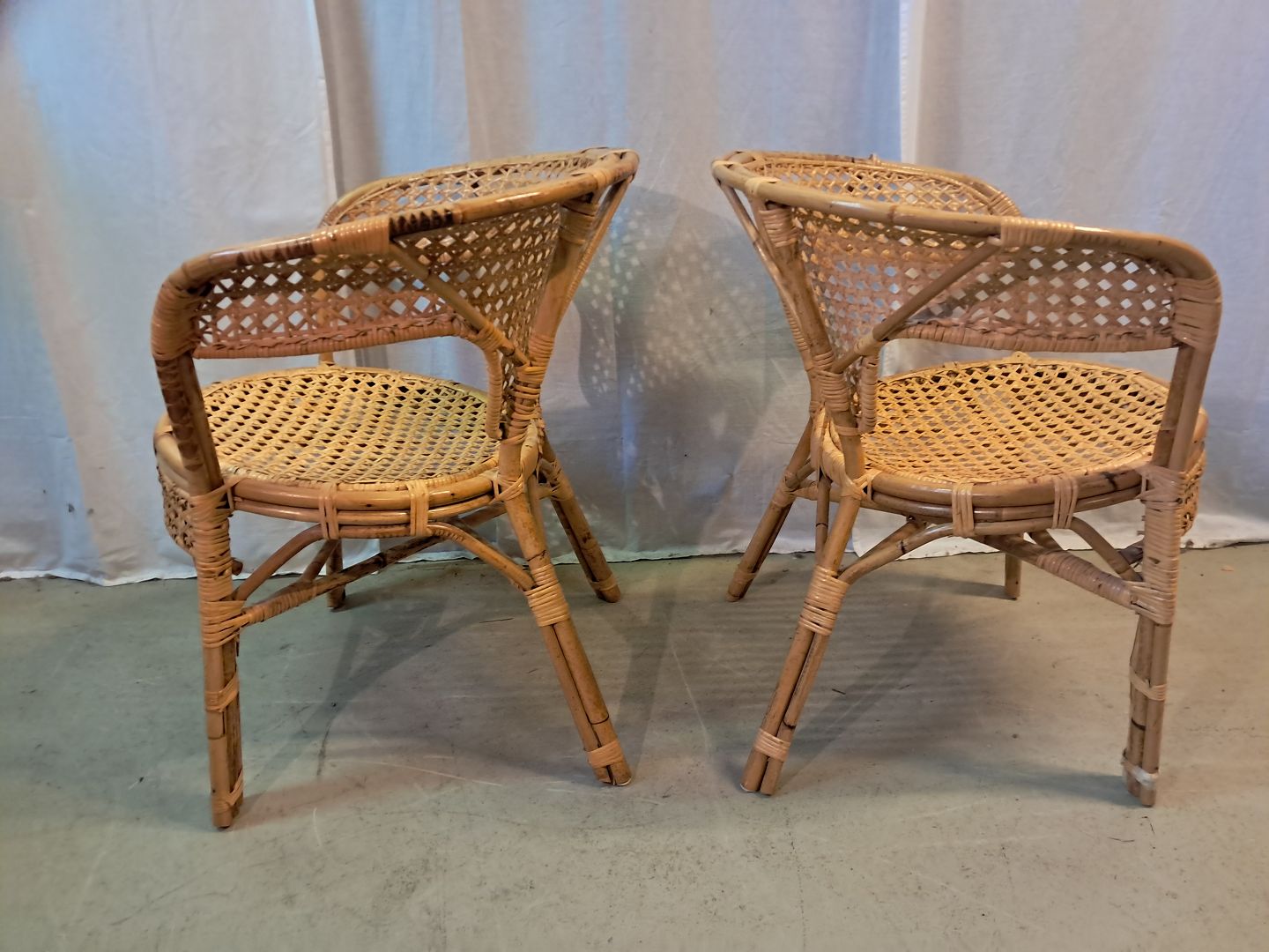 2 Armstoel i rørflet, fra 1980erne.De har brugsspor og defekter.