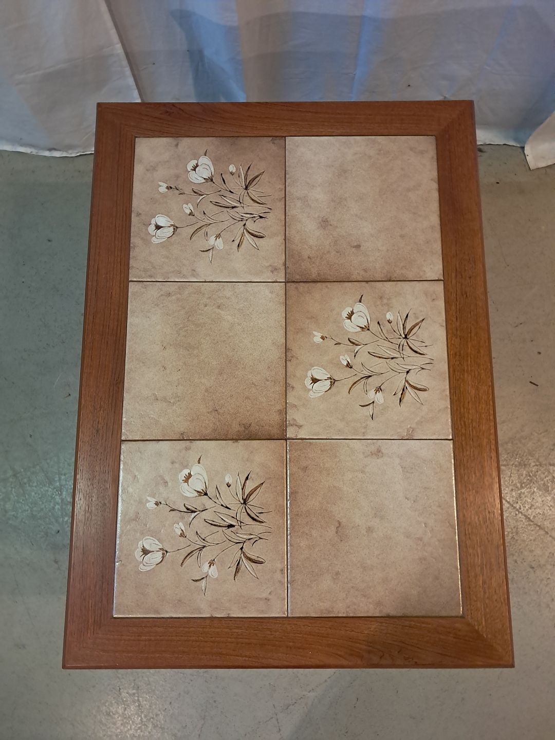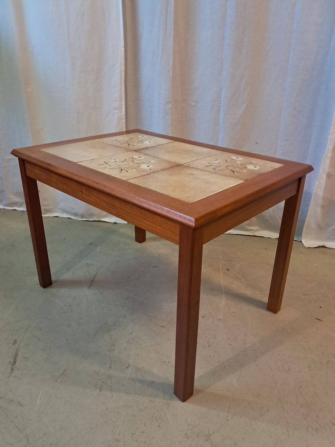Lampebord i teaktræ med kakler, fra 1980erne.Det har brugsspor.
