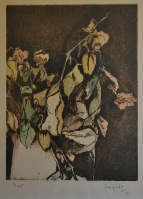 Lerfeldt, Hans Henrik (1946 - 1989) Denmark: Composition. Etching in colors. Signed 77. No. 1/25. 22.5 x 17 cm.Framed: 39 x 32 cm.