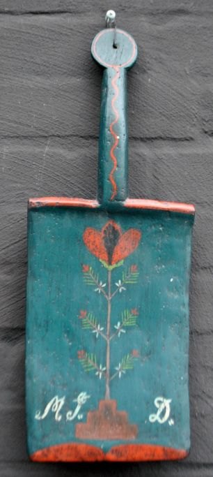 Knocking board, Denmark, 19th century. In beech with blue painting with flowers. With initials: AJD Painted. L: 45 cm. W: 17 cm.Item number: 28822