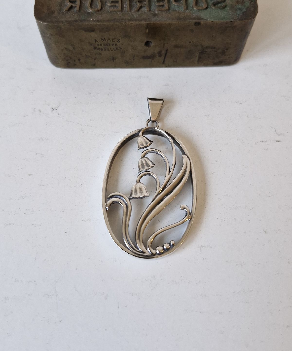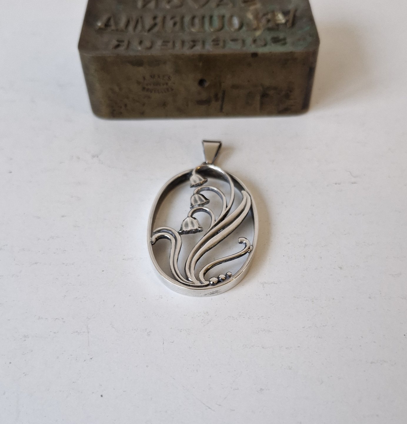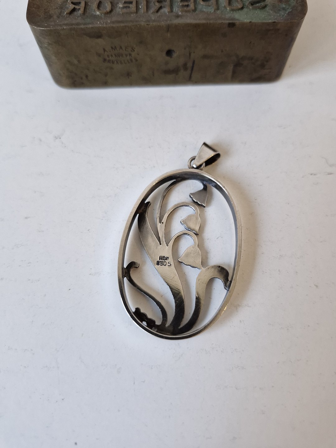 Hugo Green silver pendant decorated with lily of the valleyStamp: H.Gr - 830s