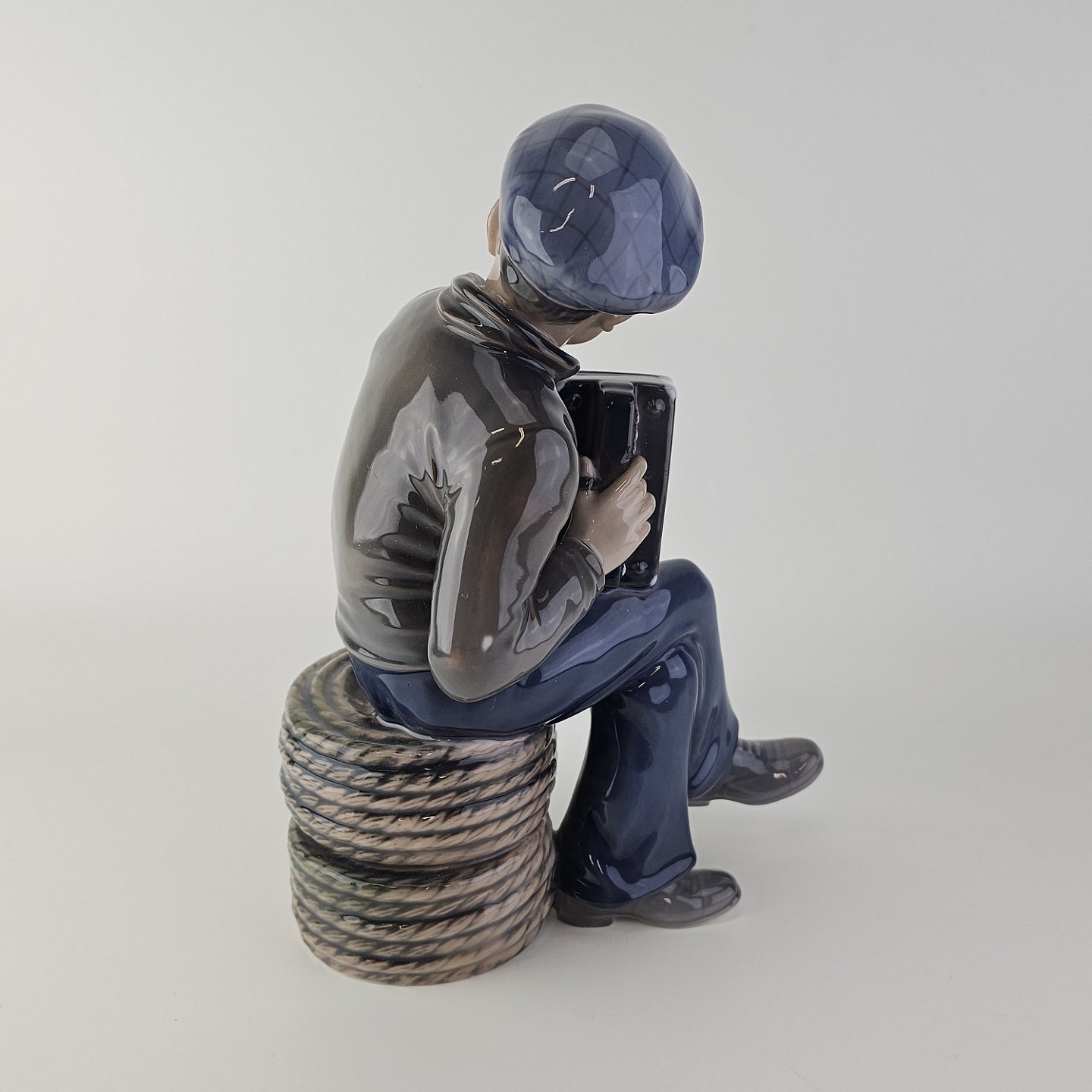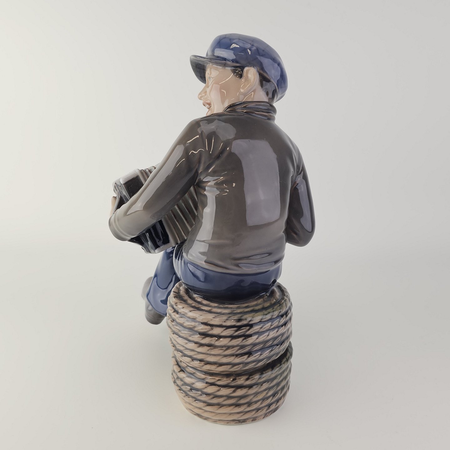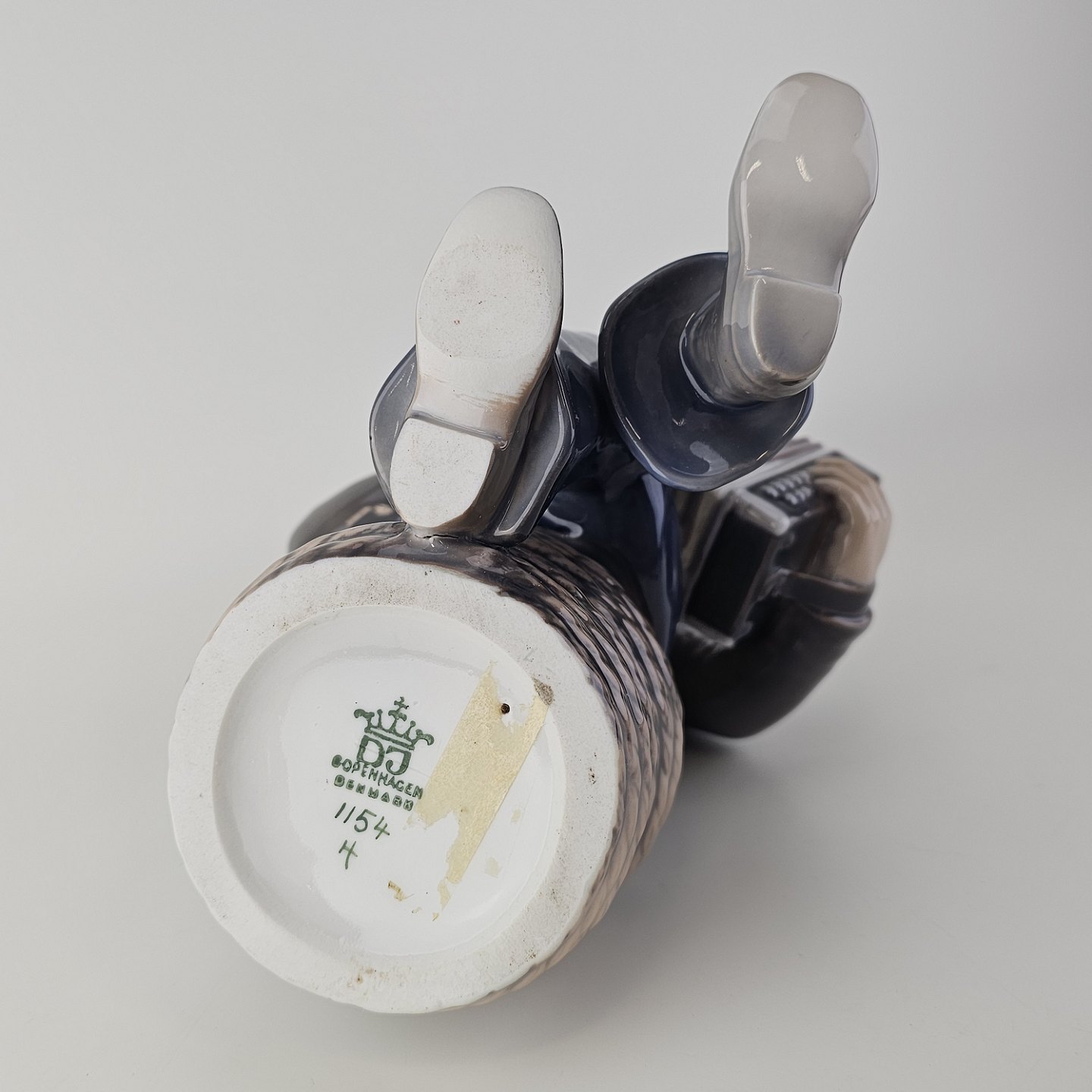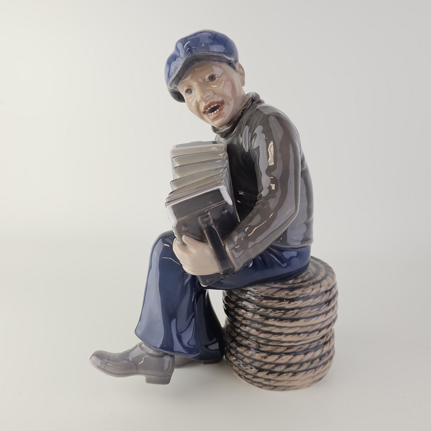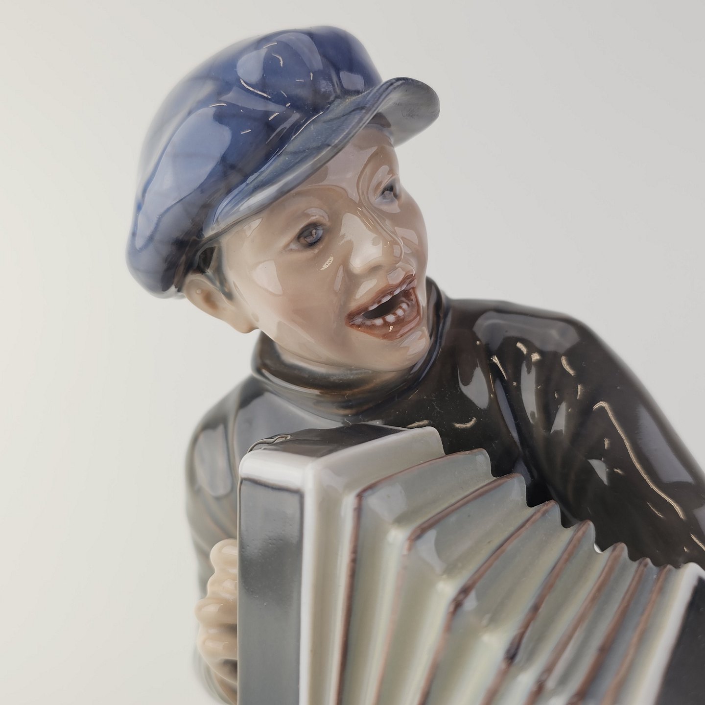 Figur i hvidt porcelæn med motiv af en dreng som spiller harmonikaNr. 1154