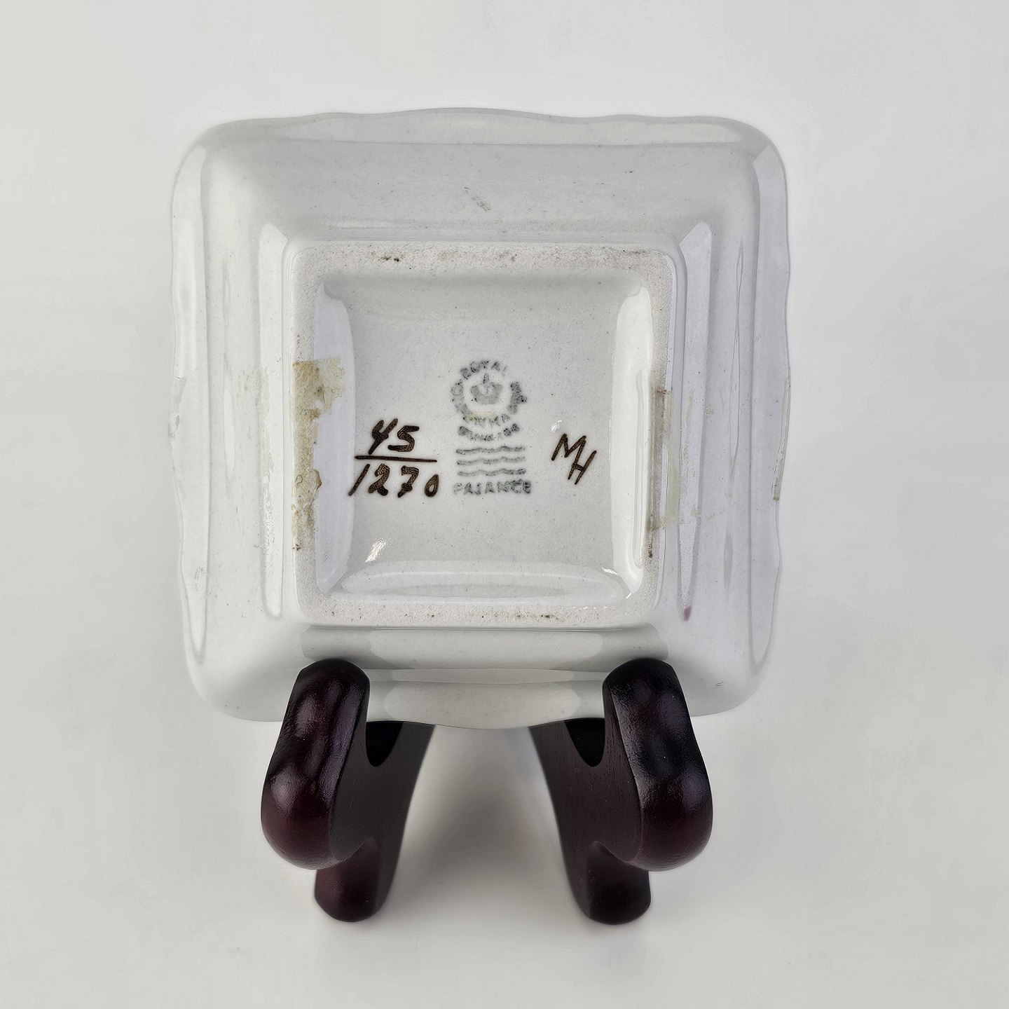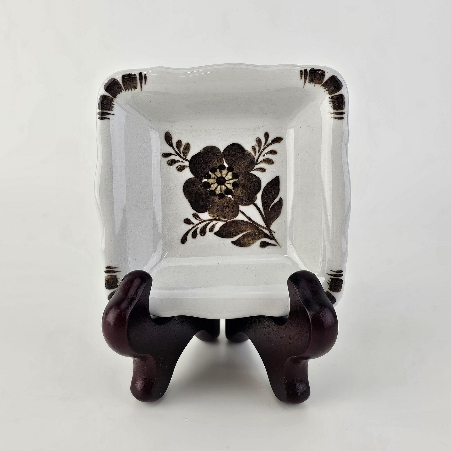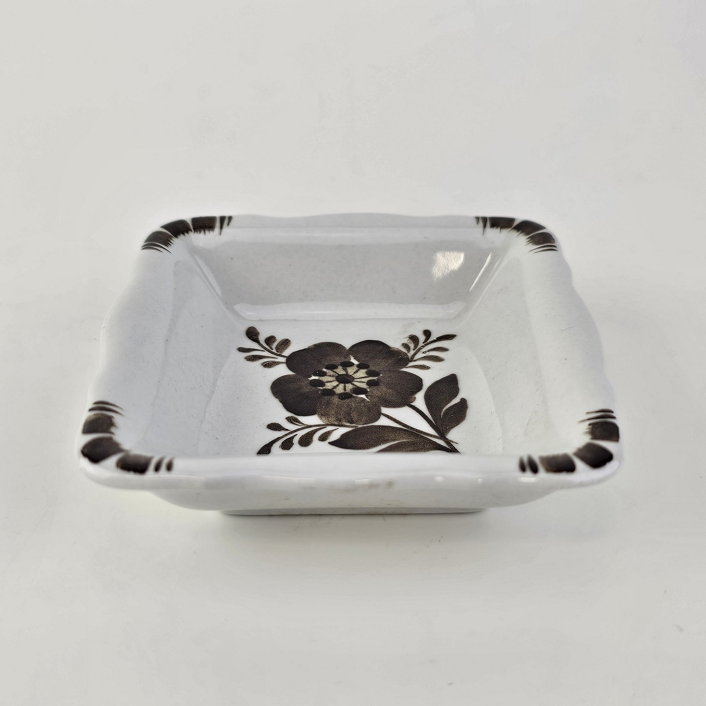 Firkantet asiet i fajance fra stellet Brun Tranquebar fra år 1919Nr 45/1270