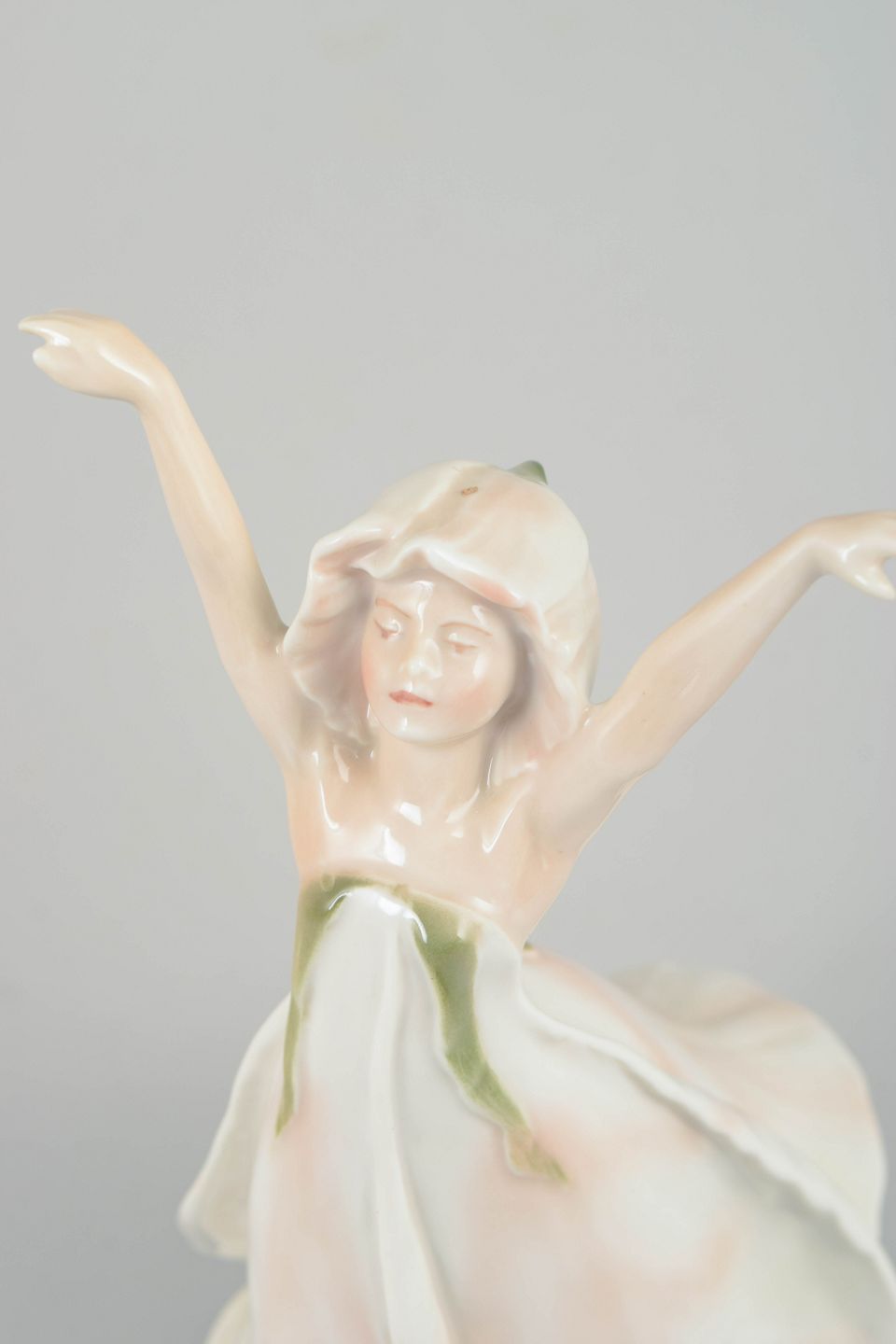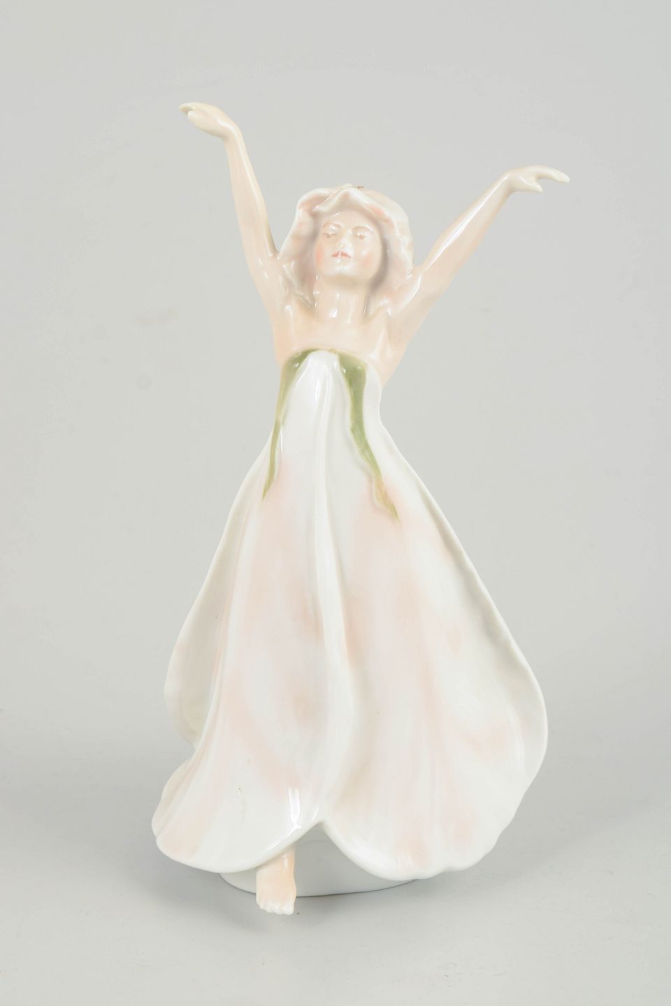 Bing & Grøndahl, Den Lille Idas Blomster figur.Porcelænsfigur forestillende Den Lille Idas Blomster, udført for H.C. Andersen Samlingen. Figuren er modelleret som en ung pige med løftede arme og svajende kjole i bløde hvide og rosa nuancer med diskrete grønne accenter. Undersiden er mærket Den Lille Idas Blomster, Nr. 1345/2500, hvilket angiver et begrænset oplag.