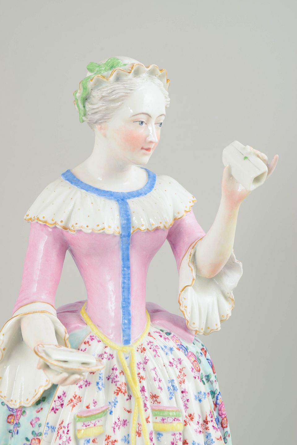 Meissen was Europe’s first manufacturer of hard-paste porcelain, founded in 1710, and achieved international renown during the 18th century for figurative porcelain of exceptional artistic and technical standard. The Marcolini period is associated with refined modelling, high firing quality, and superb hand-painted decoration. “La Belle Chocolatière”, inspired by Liotard’s watercolour, became an icon of Enlightenment taste and everyday elegance and is regarded as one of Meissen’s most prestigious and collectible figure models.