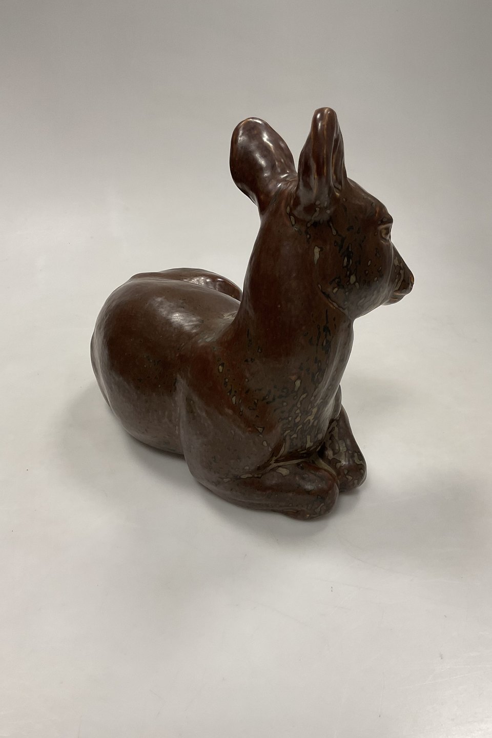 Royal Copenhagen Stoneware Figurine of lying young deer No 20506. Designed by Knud Kyhn. Measures 24 cm / 9 29/64 in.Stock: 1