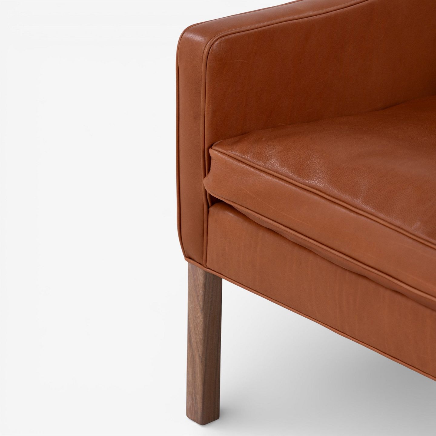 BM 2207 - Newly upholstered armchair in cognac-colored aniline leather with white oiled legs.