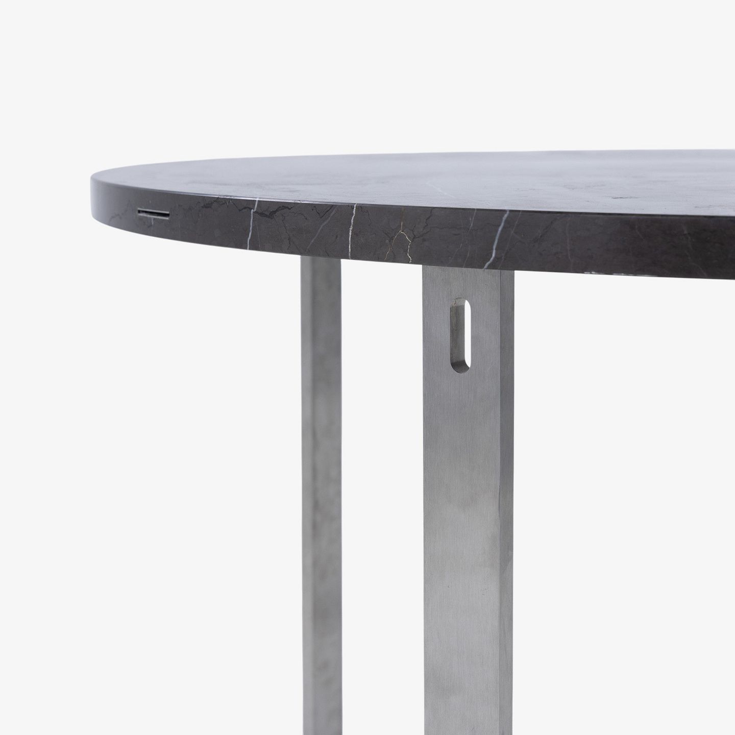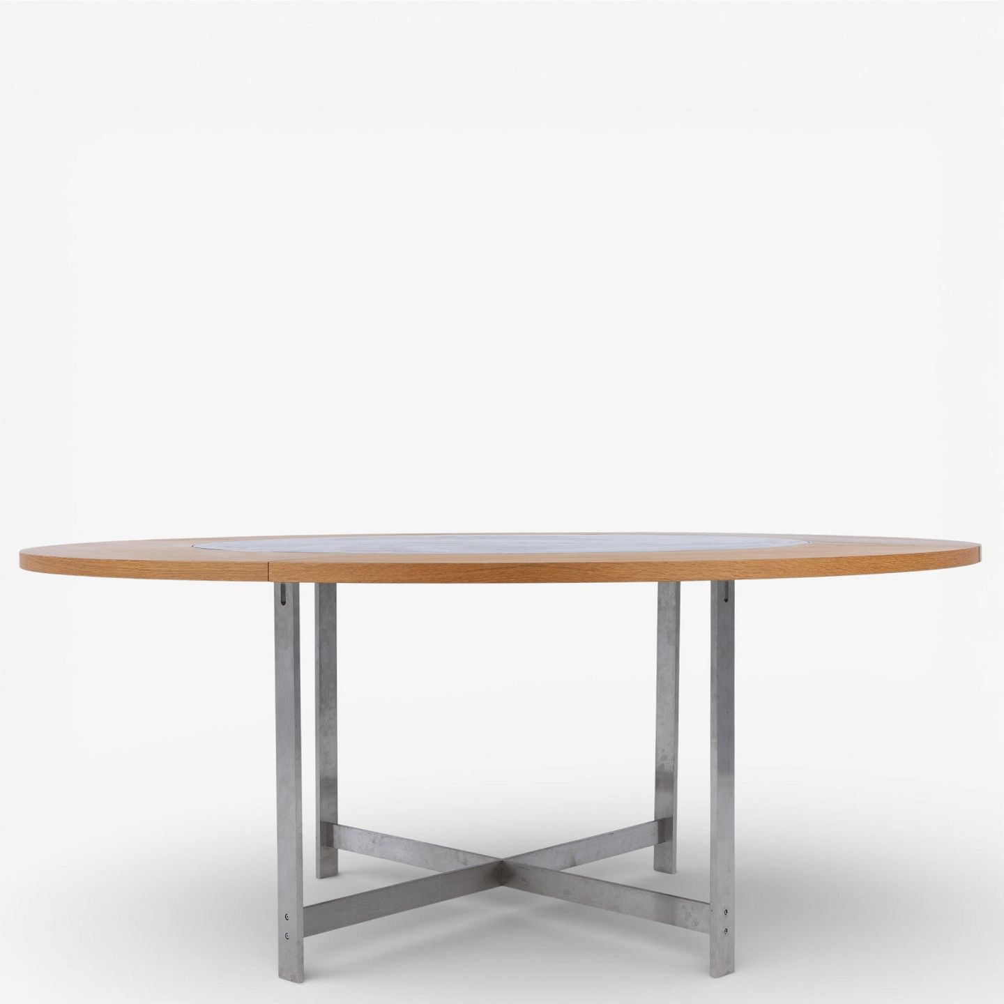 JH Spisebord med stel i stål og plade i grå marmor m. tillægsringe i olieret eg.