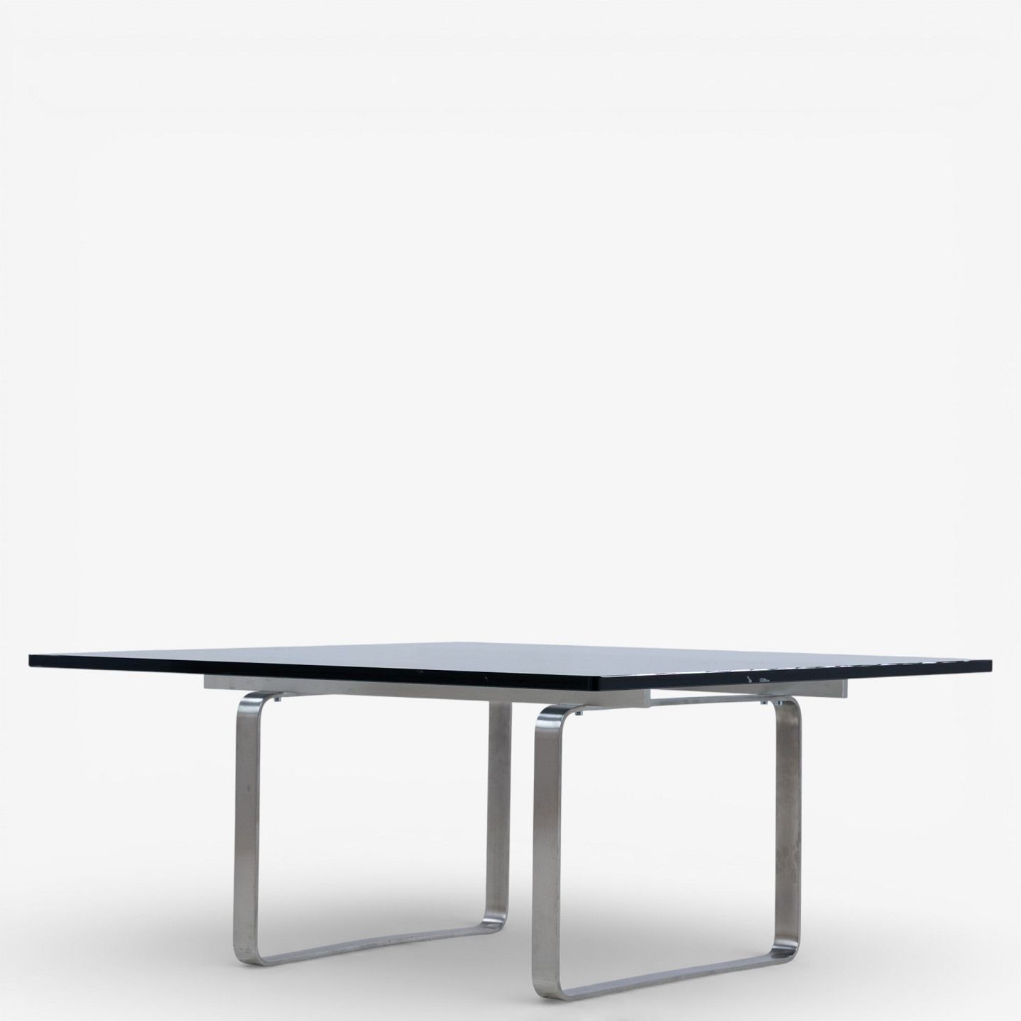CH 106 - Sofabord med stel i stål og plade i glas.