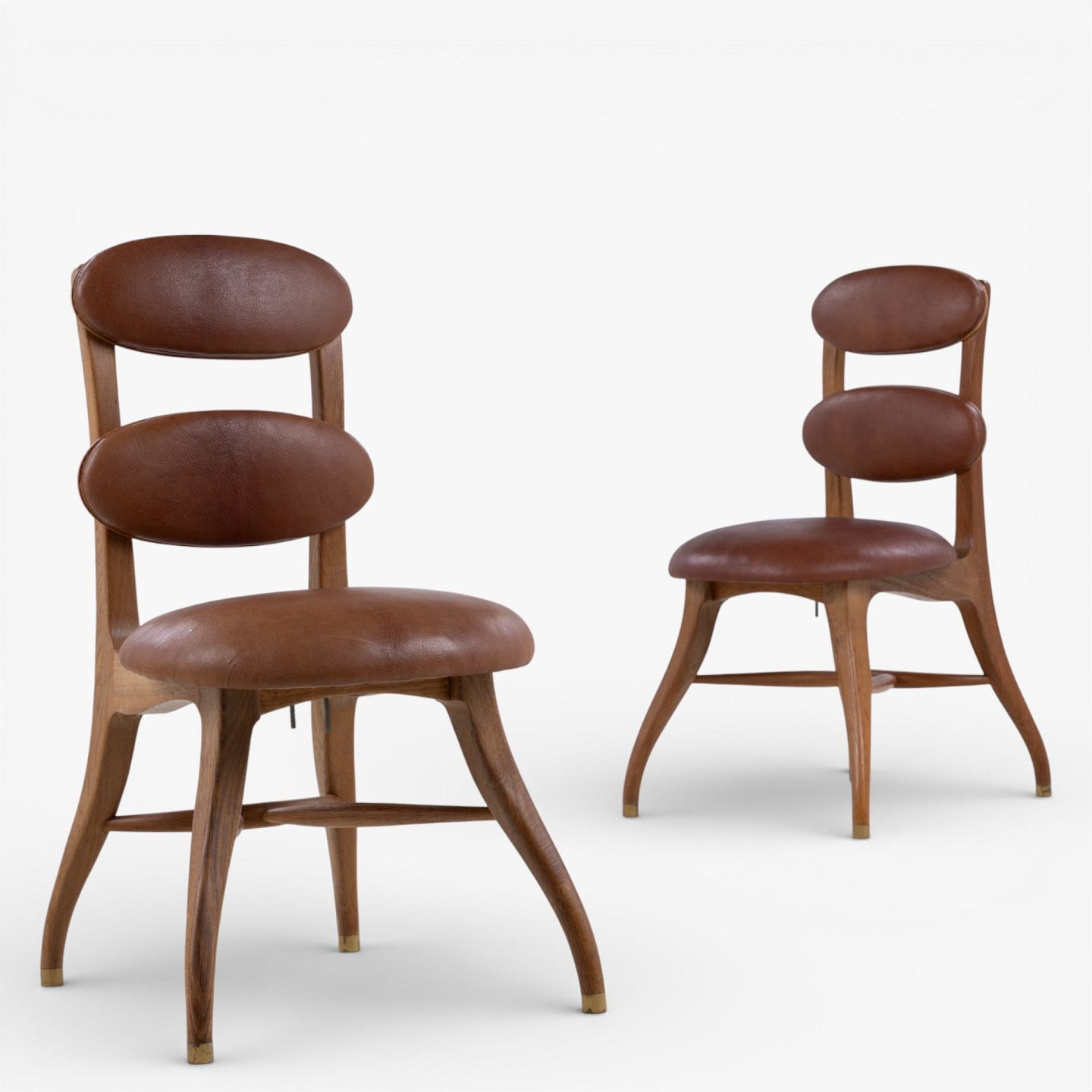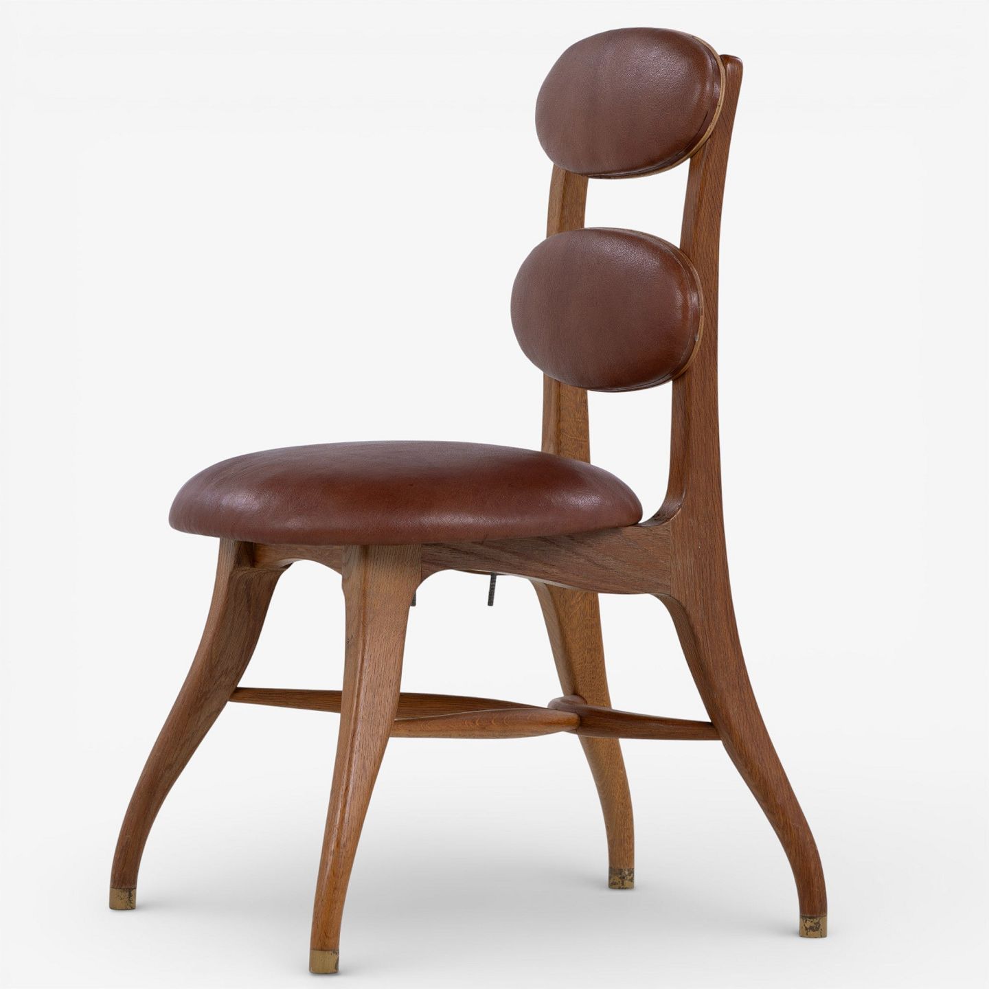 'Musician's chair' with a frame in patinated oak and an adjustable seat and back in patinated nigerian leather. Designed in 1942.