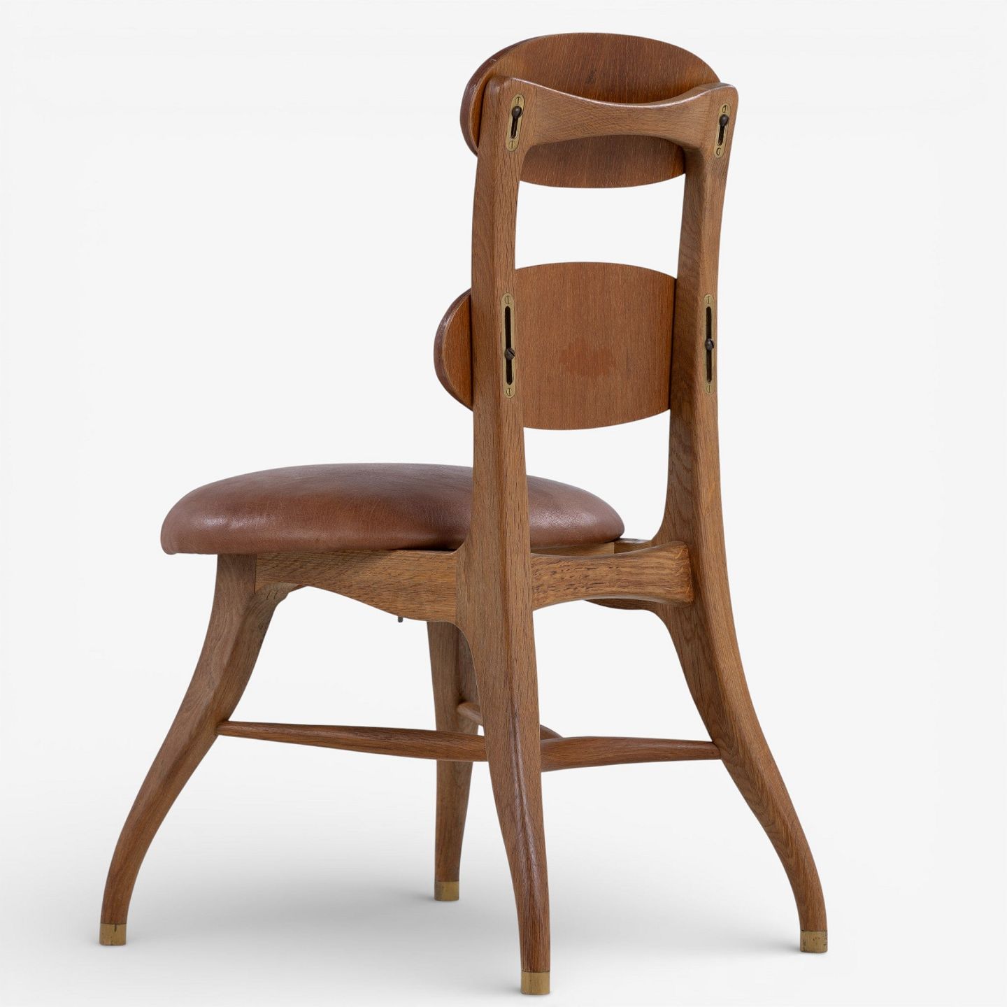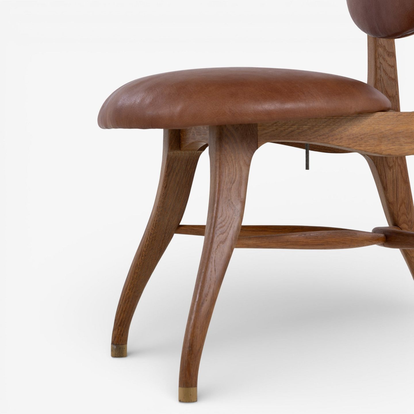 'Musician's chair' with a frame in patinated oak and an adjustable seat and back in patinated nigerian leather. Designed in 1942.