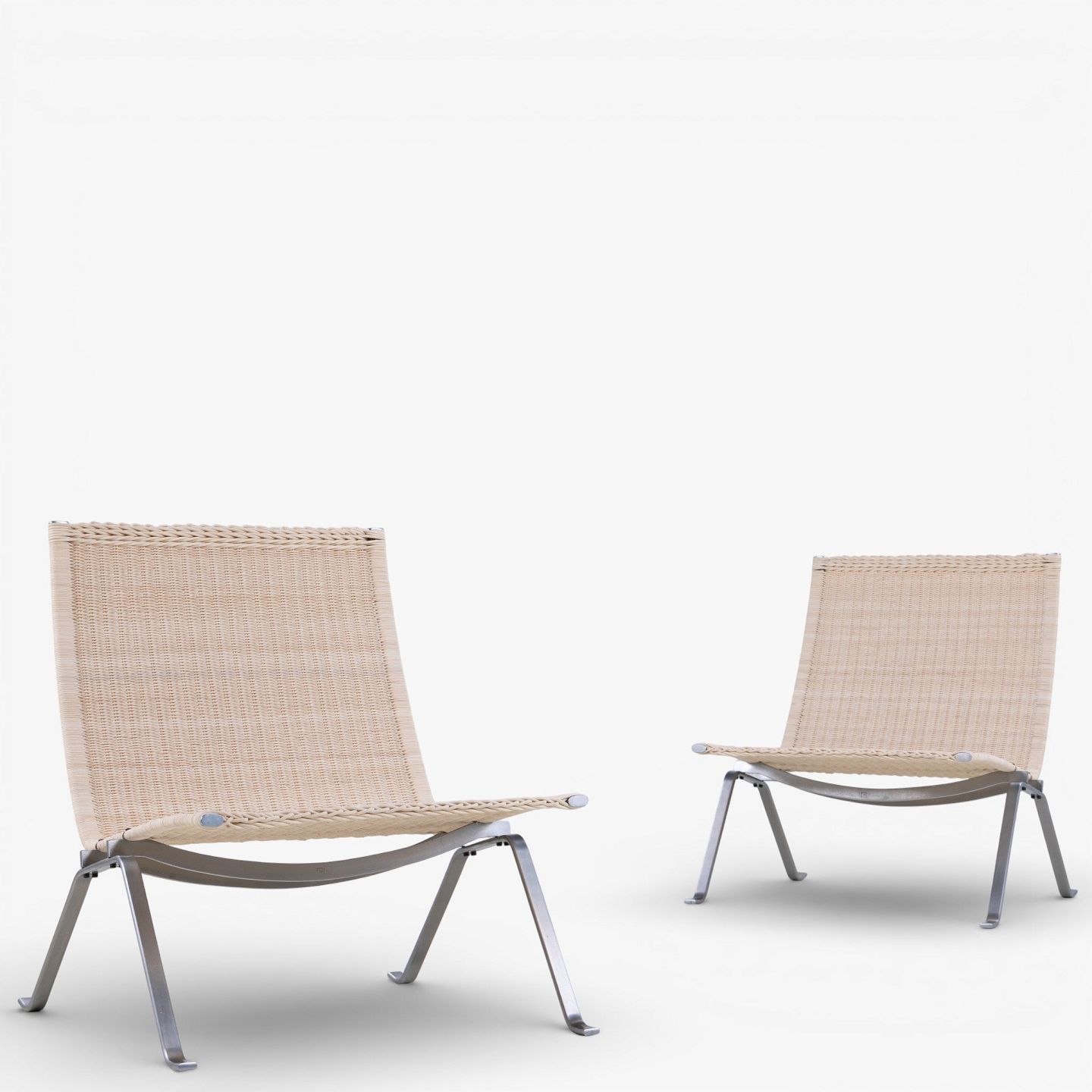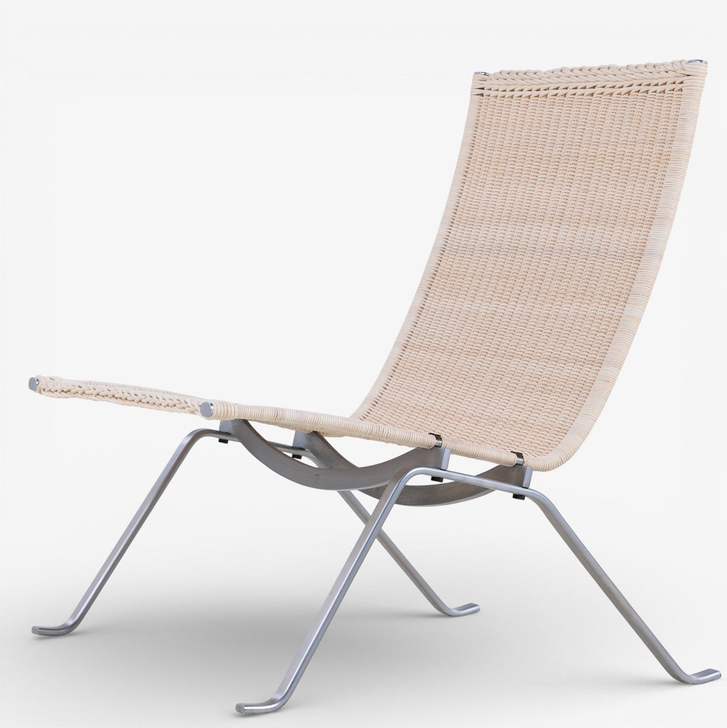 PK 22 - Armchair in newly woven cane with steel frame. Manufacturer's stamp.