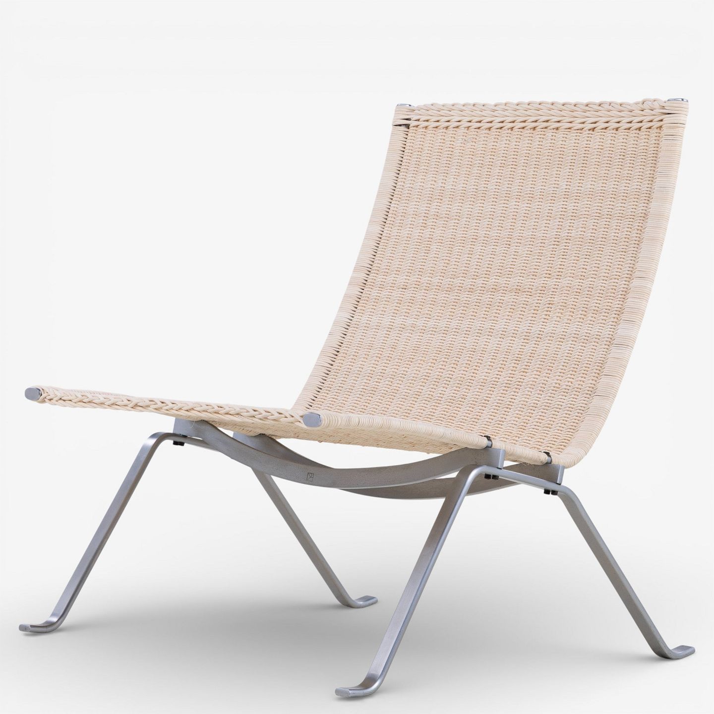 PK 22 - Armchair in newly woven cane with steel frame. Manufacturer's stamp.