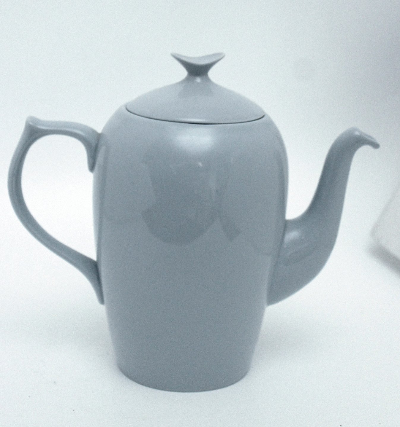 Bing & Grøndahl, Leda, Sart lysegrå/lyseblå stel. Kaffekande. Farven snyder meget, på billederne ser det lyseblåt ud og alt efter lyset ser det gråt ud.Kaffekande. Nr. 301. Højde 20,5 cm. Længde 22 cm. Bredde 10 cm.