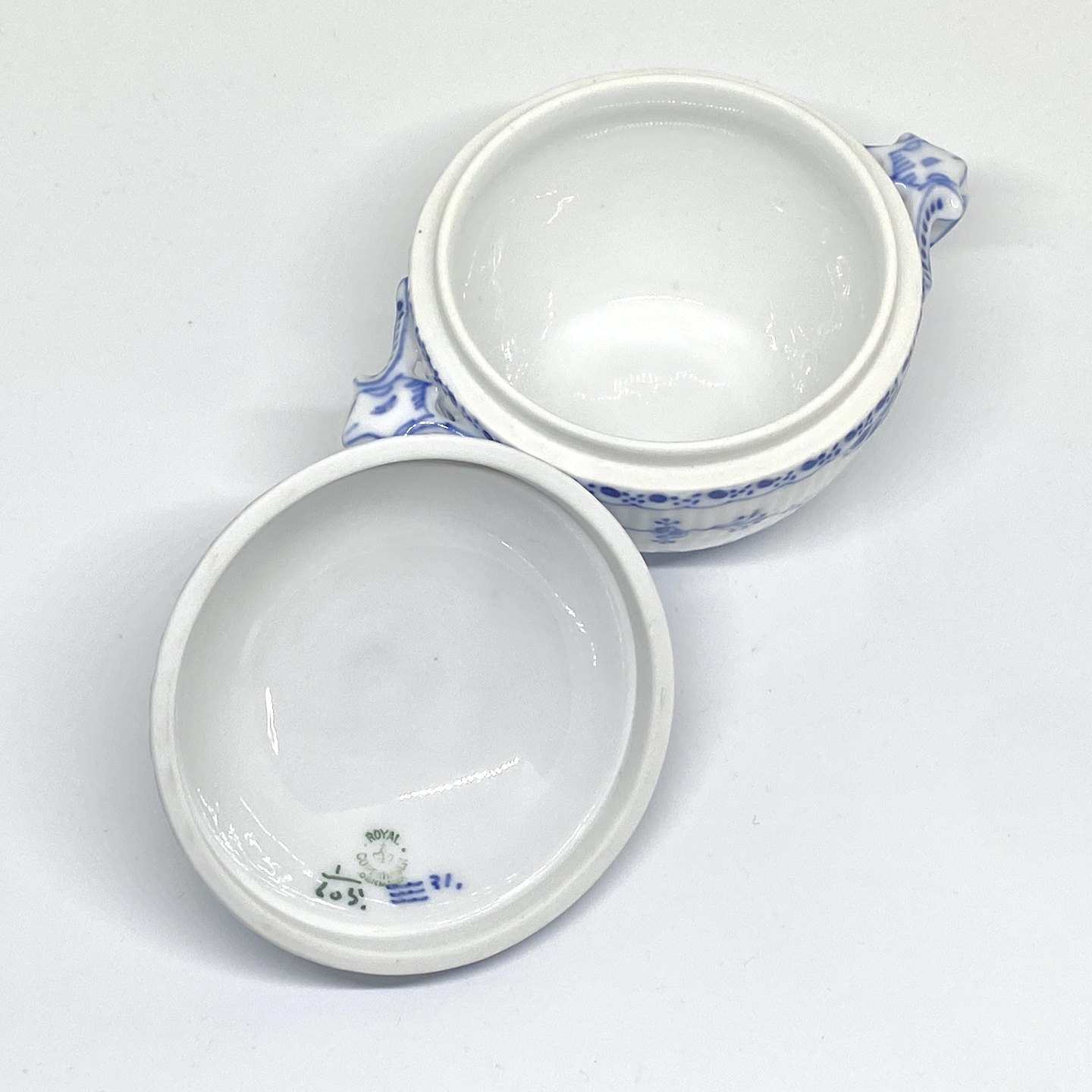 Royal Copenhagen/Kgl. Blue Fluted half lace. Sugar bowl with lid. Decoration number 1/6052 sorting. Dimensions: Ø 10 cm. H. 11 cm.