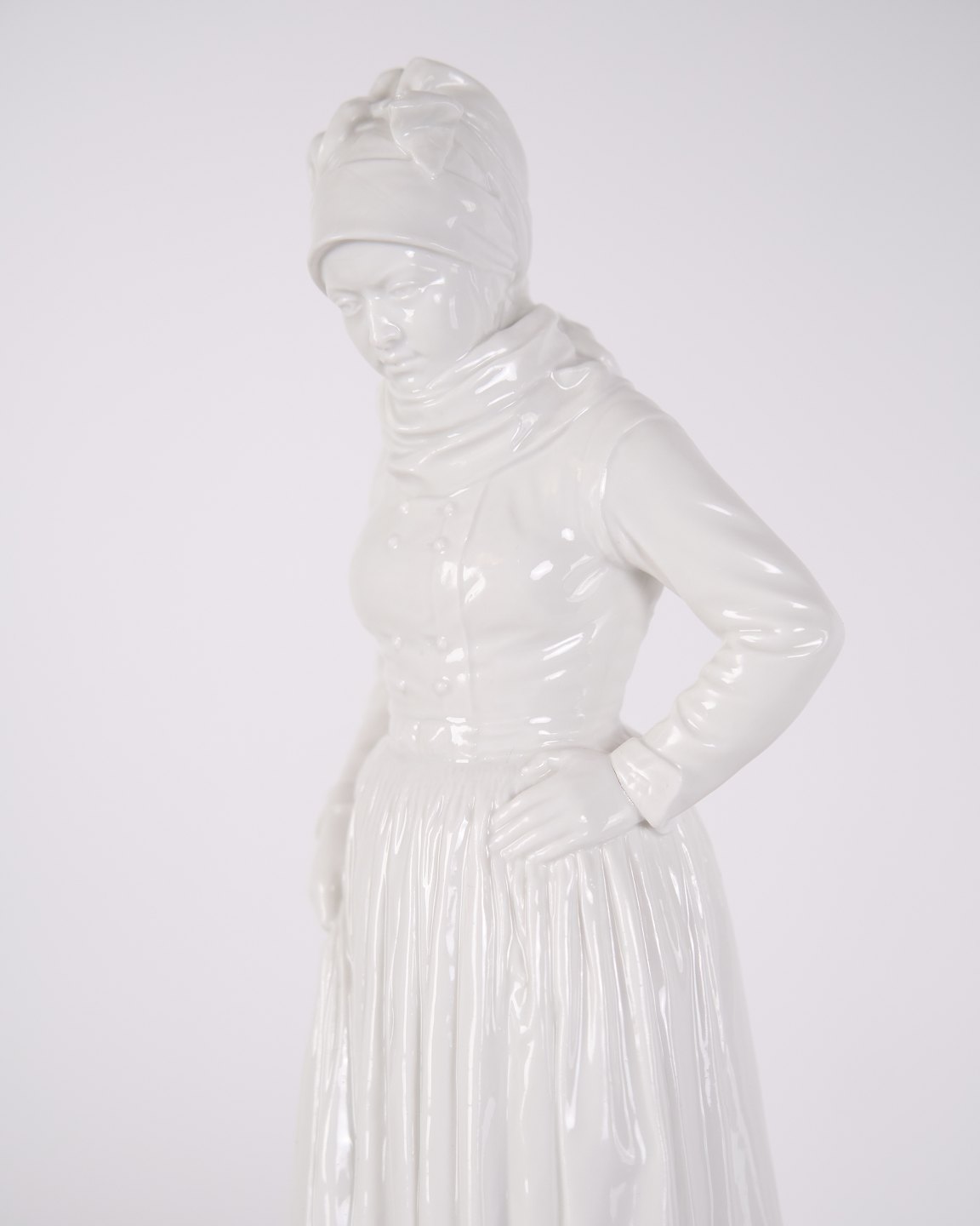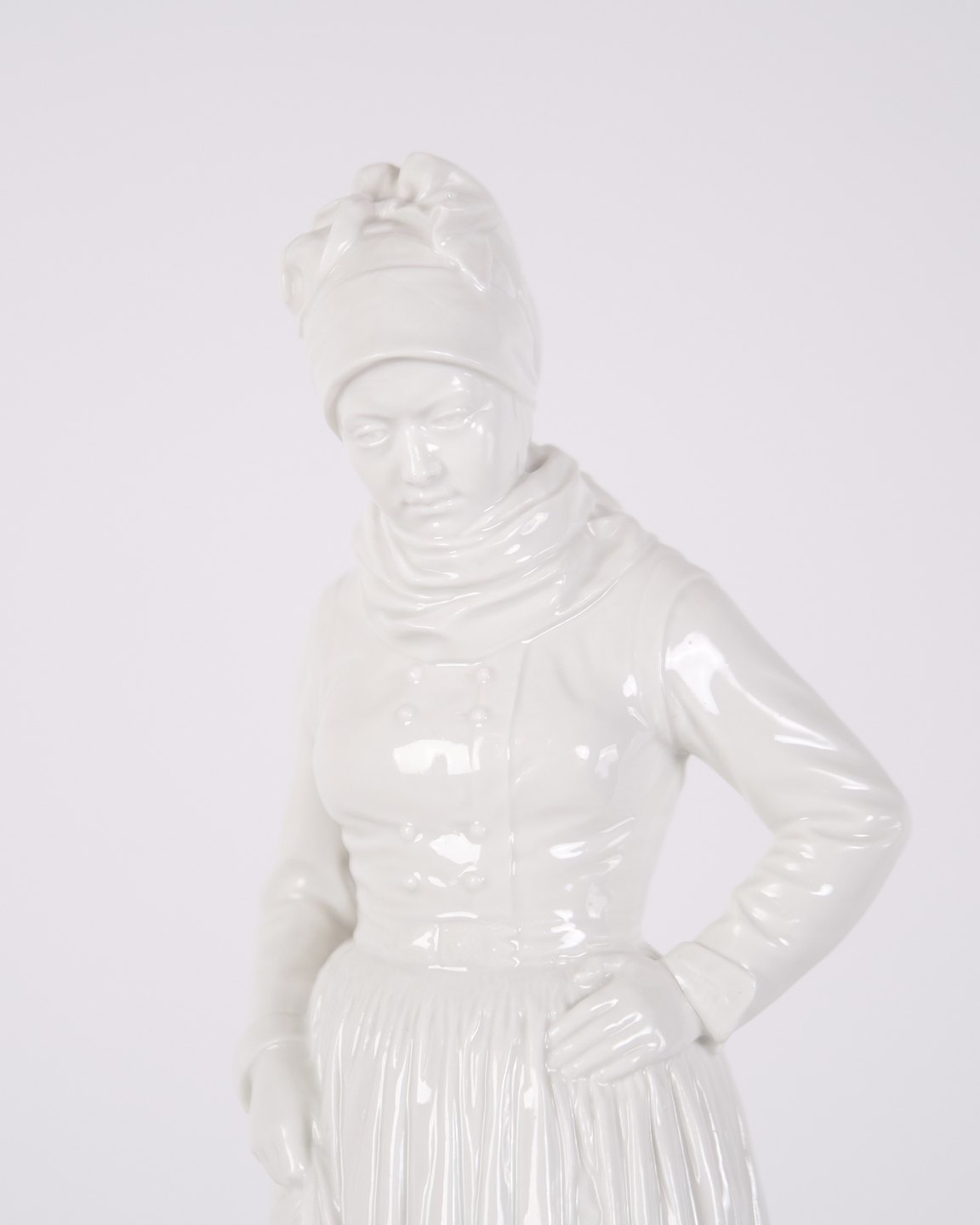 The figure was designed by Carl Martin-Hansen (1877–1941) for Royal Copenhagen and is part of the series Danish National Costumes.The series includes a total of 47 figures and was produced in the period 1906–1925. Carl Martin-Hansen was recognized for his work with figures, busts and monuments and was part of the naturalistic tradition in Danish art around the turn of the century.