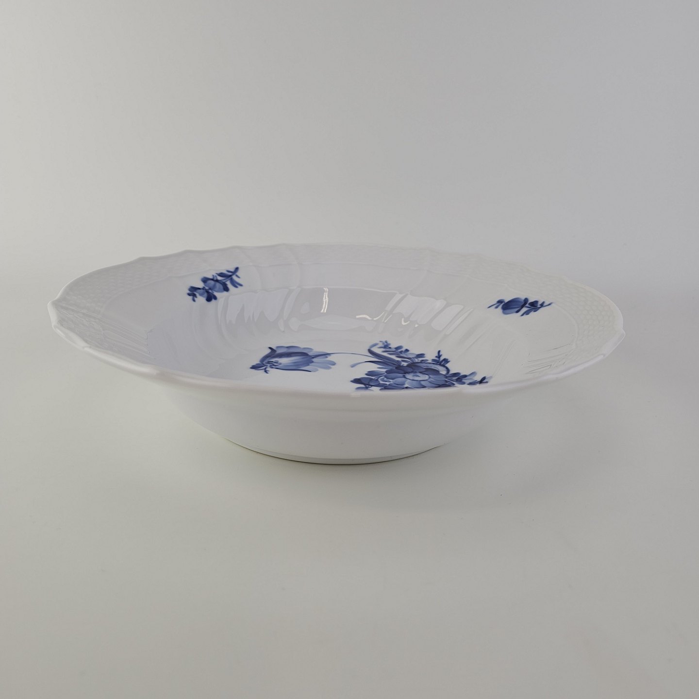 Dyb tallerken i porcelæn fra stellet Blå Blomst svejfetNr 10/1614