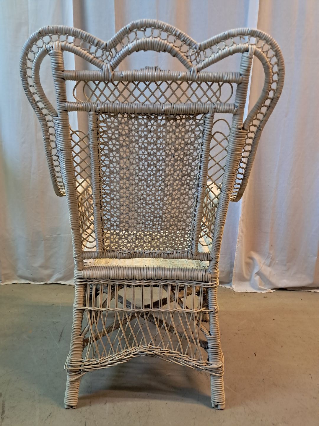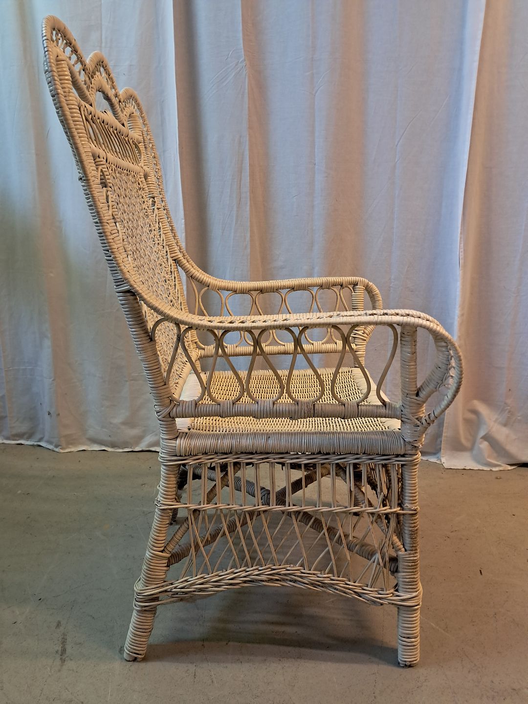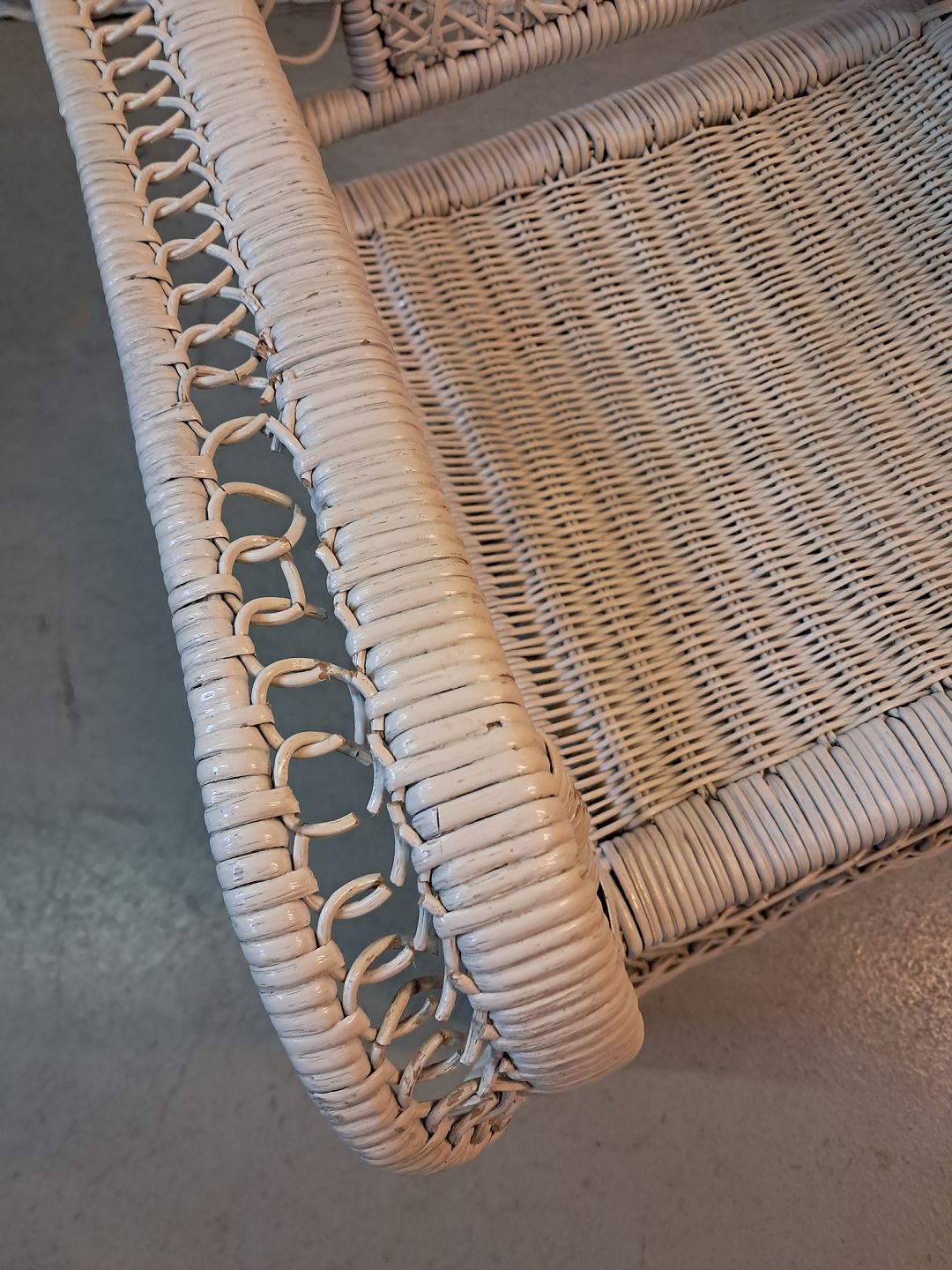 Malet kurvestol, fra 1940erne.Den har brugsspor og defekter.